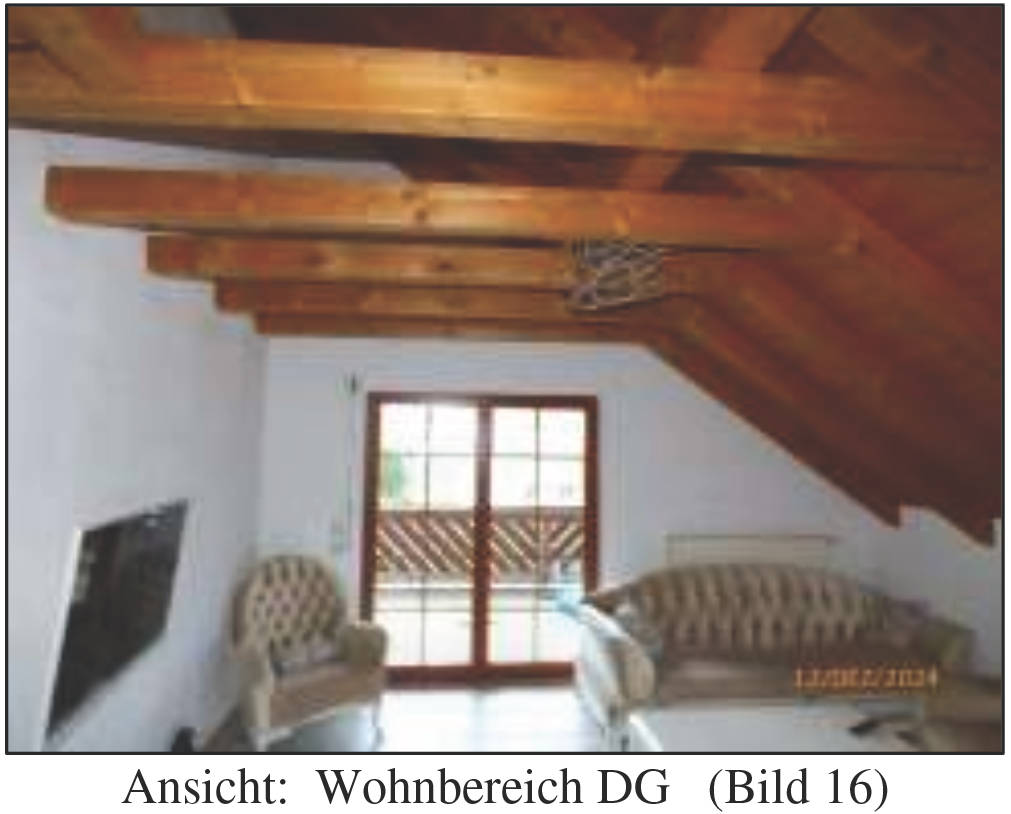Zum Wertermittlungs-Stichtag war die Wohnung im Erdgeschoss vermietet, die Wohnung im Dachgeschoss eigengenutzt (nicht bewohnt) und die Garagen vermietet.