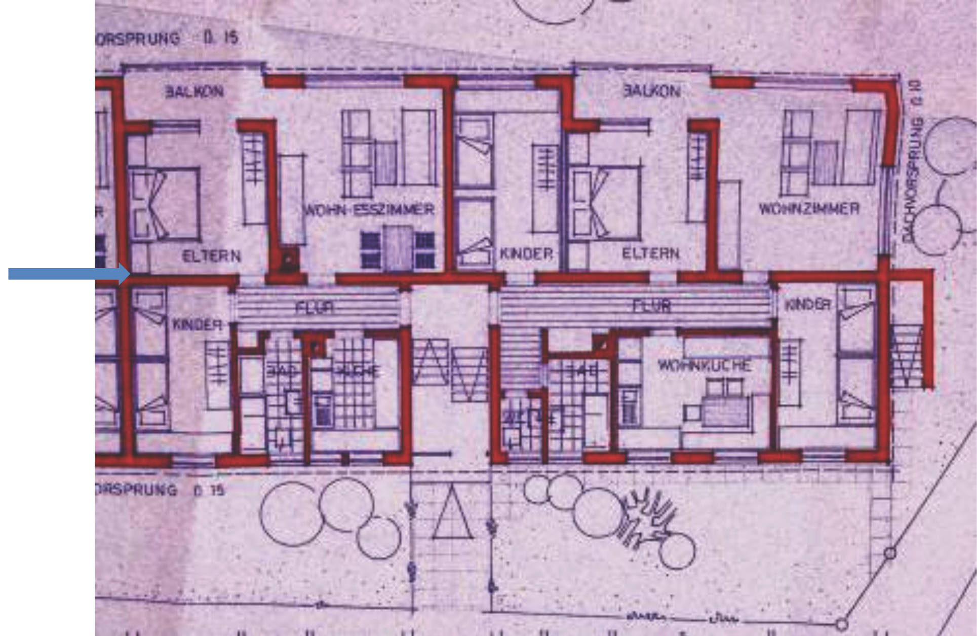 Das Gebäude selbst wurde 1966 in massiver Bauweise errichtet und verfügt über ein Vollunterkellerung. Die Aufteilung ist klassisch, jede Wohneinheit ist über ein zentrales Treppenhaus erreichbar. Die Gesamtanlage verfügt über 14 Wohneinheiten (Haus Nr. 115/ 117). Das Dach ist als ausgebautes Satteldach (Flachdachpfanne) gestaltet, die Außenwände bestehen aus 30 cm Mauerziegelmauerwerk mit Wärmedämmverbundsystem (WDVS). Die Wärmeversorgung erfolgt zentral über eine Ölheizung, die Warmwasserbereitung ebenfalls zentral.