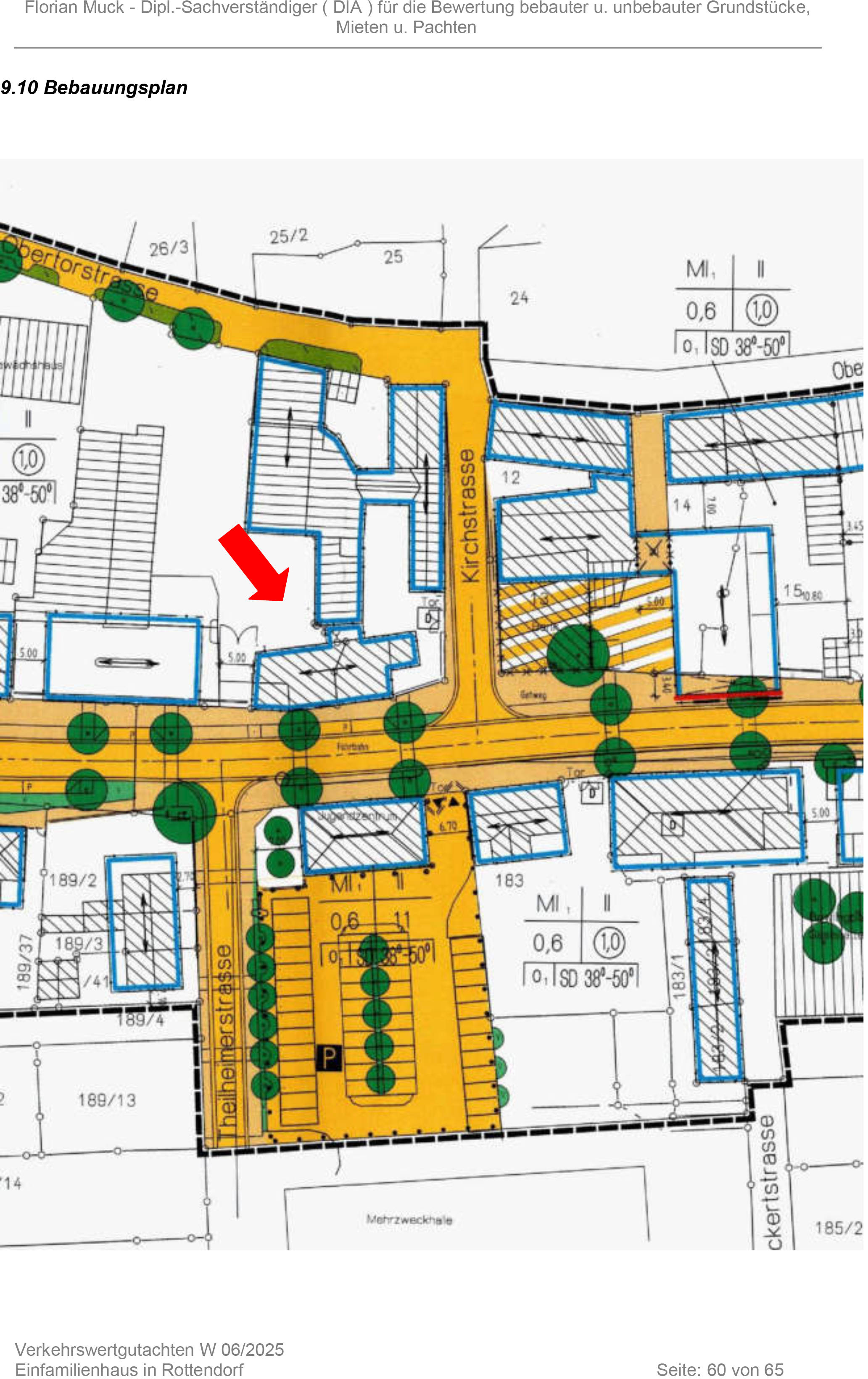 annähernd rechteckiges Grundstück mit ausspringender Ecke bebaut mit einem Einfamilienhaus; mittlere Grundstücksbreite ca. 11 m; mittlere Grundstückstiefe ca. 15 m; annähernd ebenes Gelände; keine Stellplätze; nicht unterkellertes, zweigeschossiges Einfamilienwohnhaus mit ausgebautem Dachgeschoss; Wohnfläche ca. 181 qm; Baujahr 2006; Ölbefeuerte Warmwasser-Pumpenheizung Stand Baujahr; Bauzustand altersgemäßer Normalzustand; befahrbar über Fremdgrundstück (Grunddienstbarkeit bestellt); durch Eigentümer selbst genutzt;