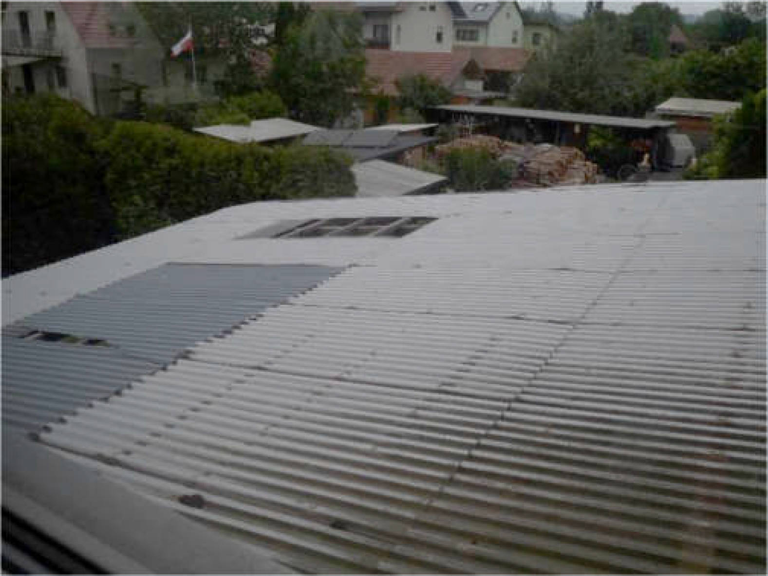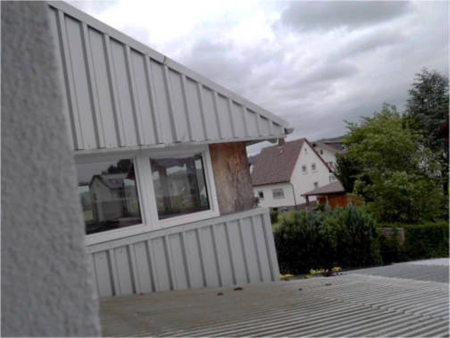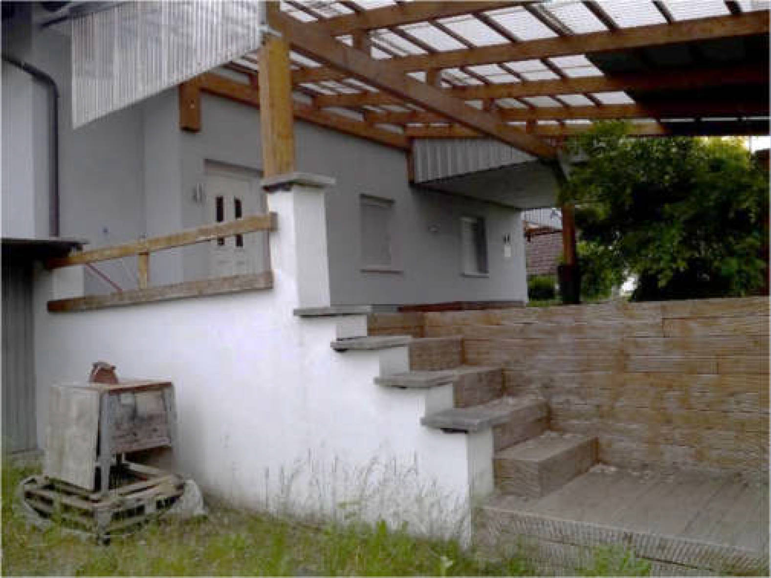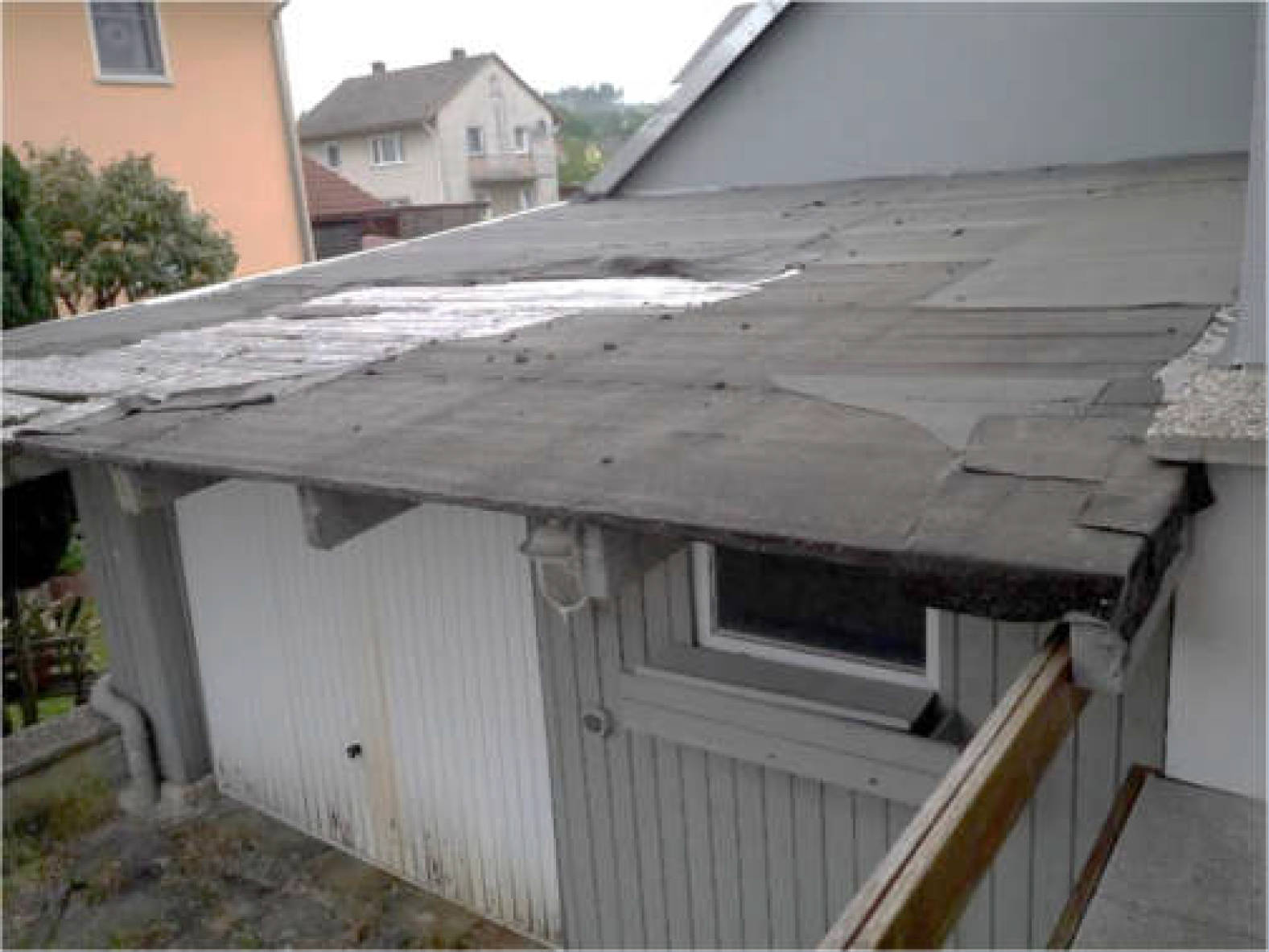 rückwärtige Überdachung - nach gewonnenem Eindruck mit Schäden;
