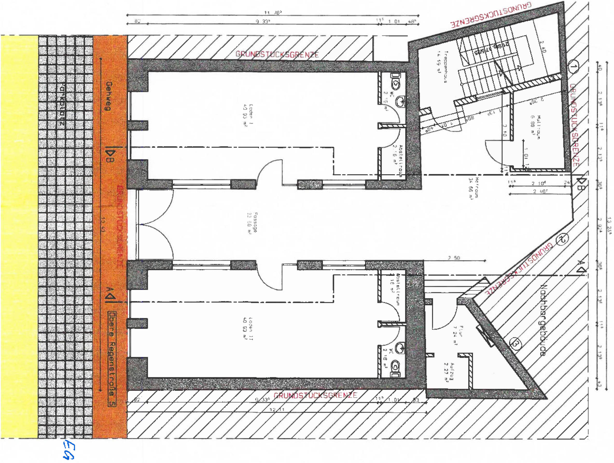 7 Tage kostenlos Testen93413 Cham, Obere Regenstraße 5: Wohn- und Geschäftshaus (dreigeschossig + ausgebautes DG), bestehend aus 2 Läden im EG und 4 Wohnungen in den darüberliegenden Geschossen; Wohnfl. ca. 363 m², Nutzfl. ca. 90 m²; BJ. fiktiv 1950, Sanierung ab 2012; Grundstücksfl. 230 m²