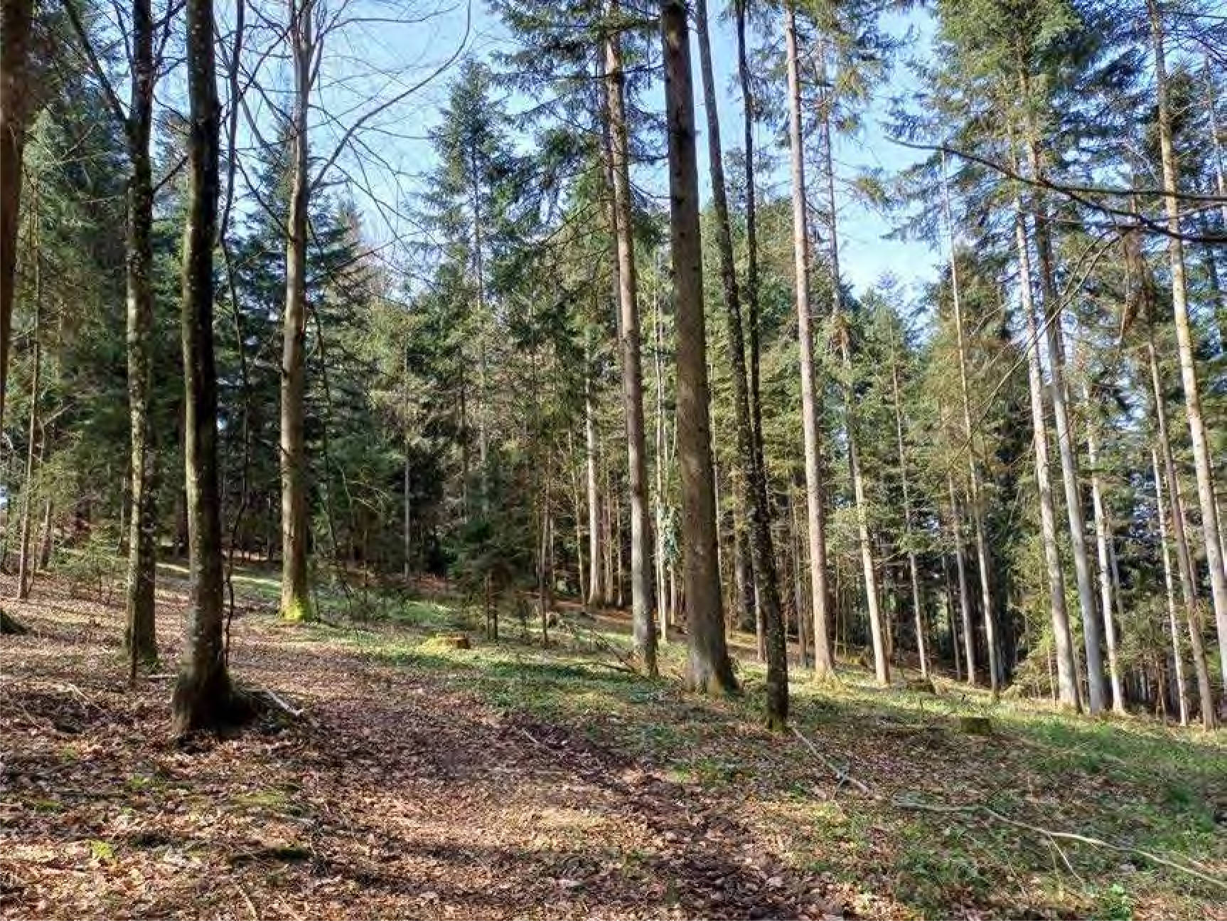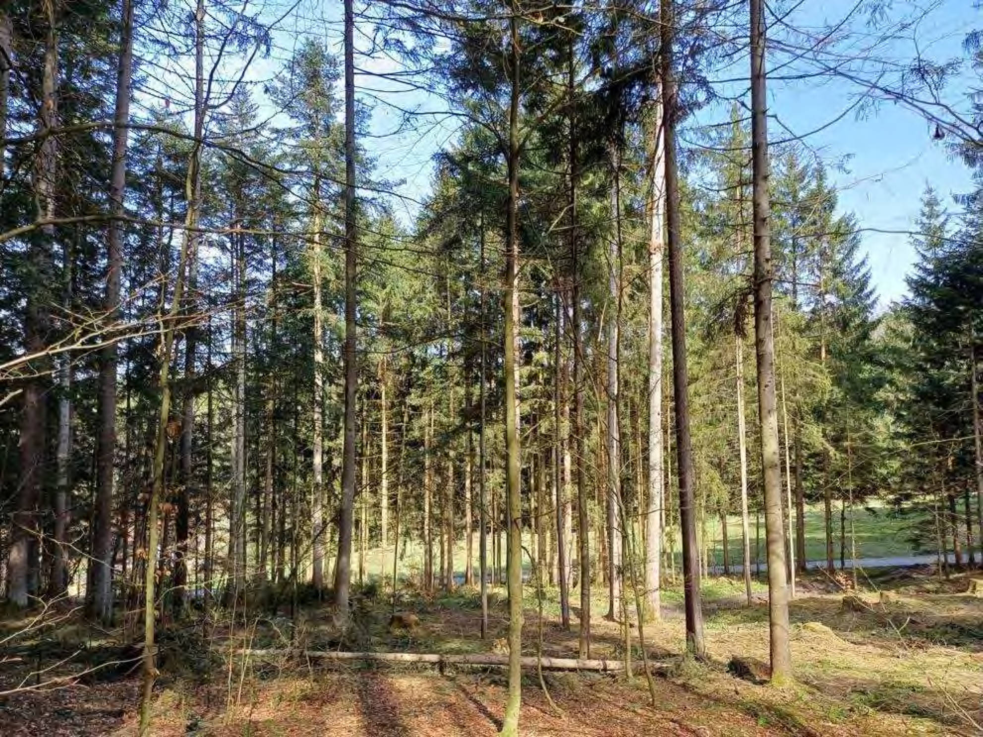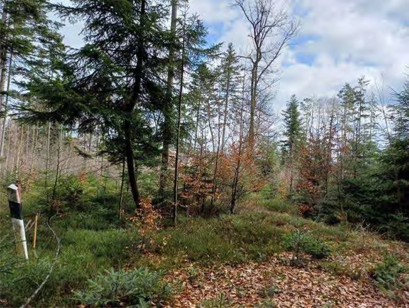 - junge Bestandsteile mit Ta-Fi-Bi-Mischbestand; der Jungbestand befindet sich auf der ganzen Grundstücksfläche mit unterschiedlicher Entwicklung; die Fläche ist insgesamt nahezu eben und grenzt südlich an die PA27; in diesem Bereich besteht Verkehrssicherungspflicht; das Grundstück selbst ist über Rückegassen und -wege befahrbar; Alter: 20 Jahre (5-35)