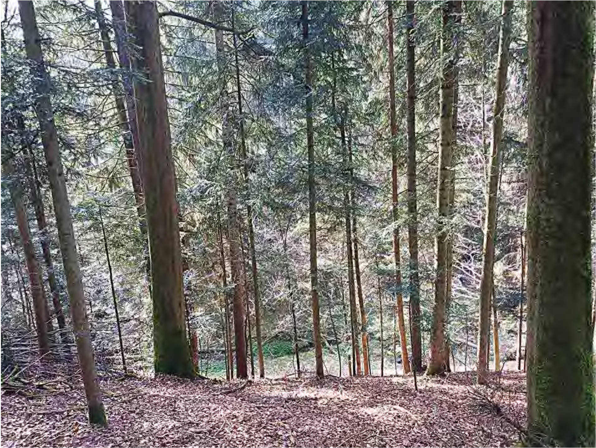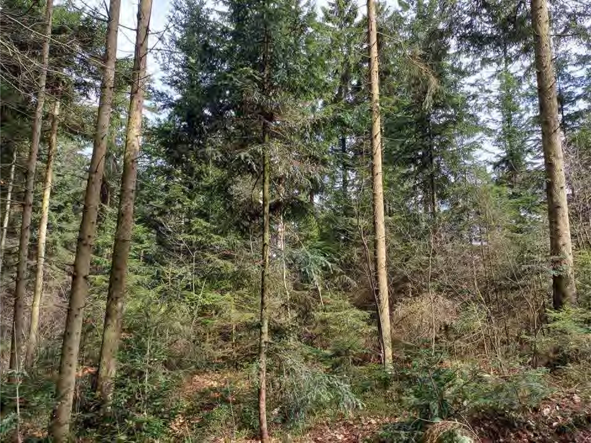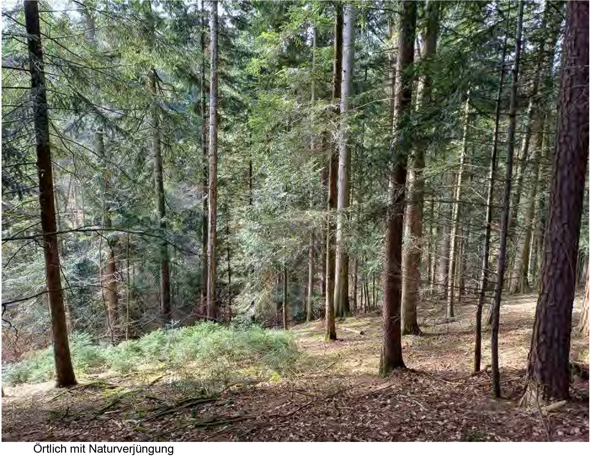 - jüngere Bestandteile mit Fi-Ta-Bu-Mischbestand; Alter: 40 Jahre (20-60)