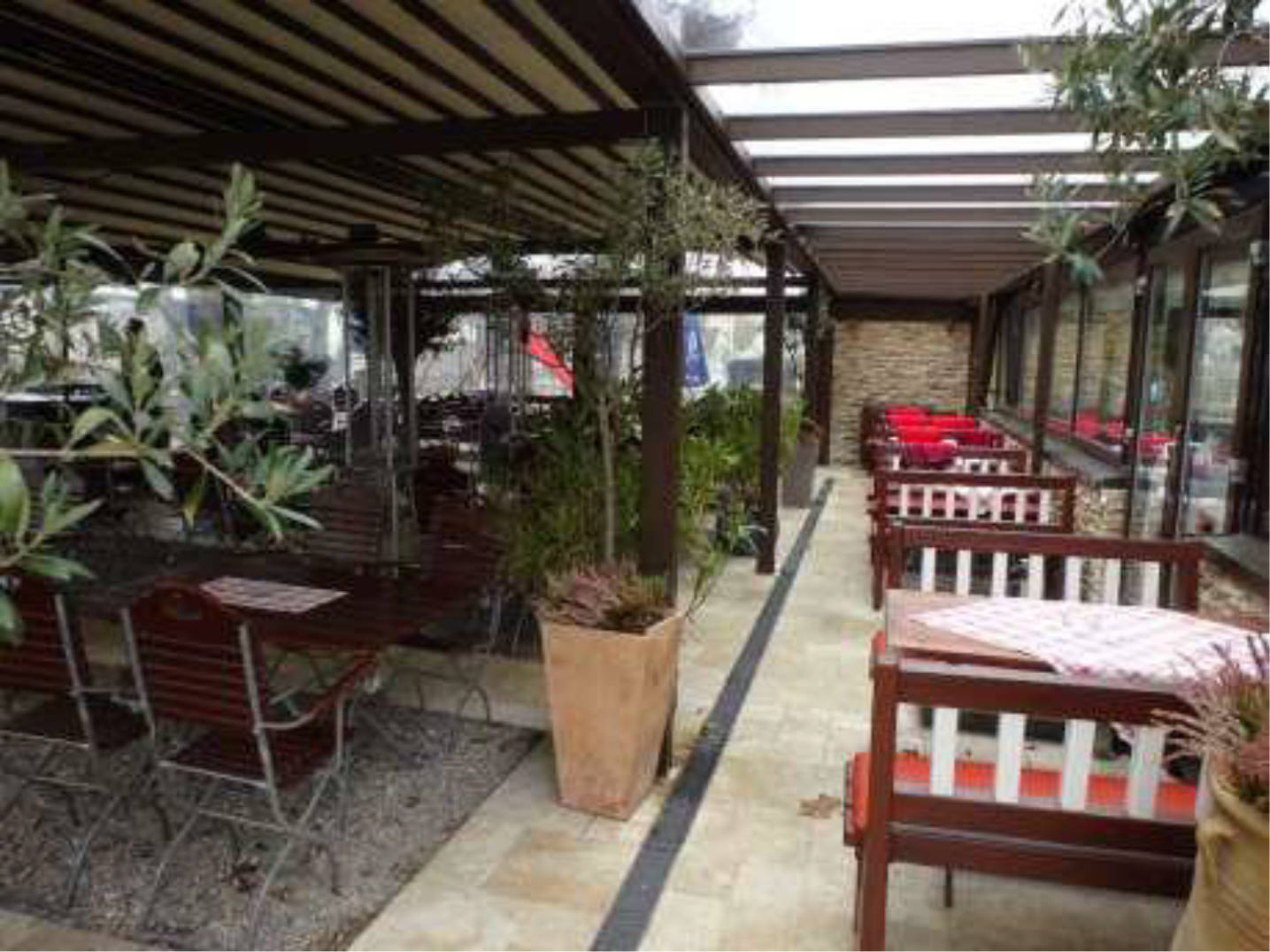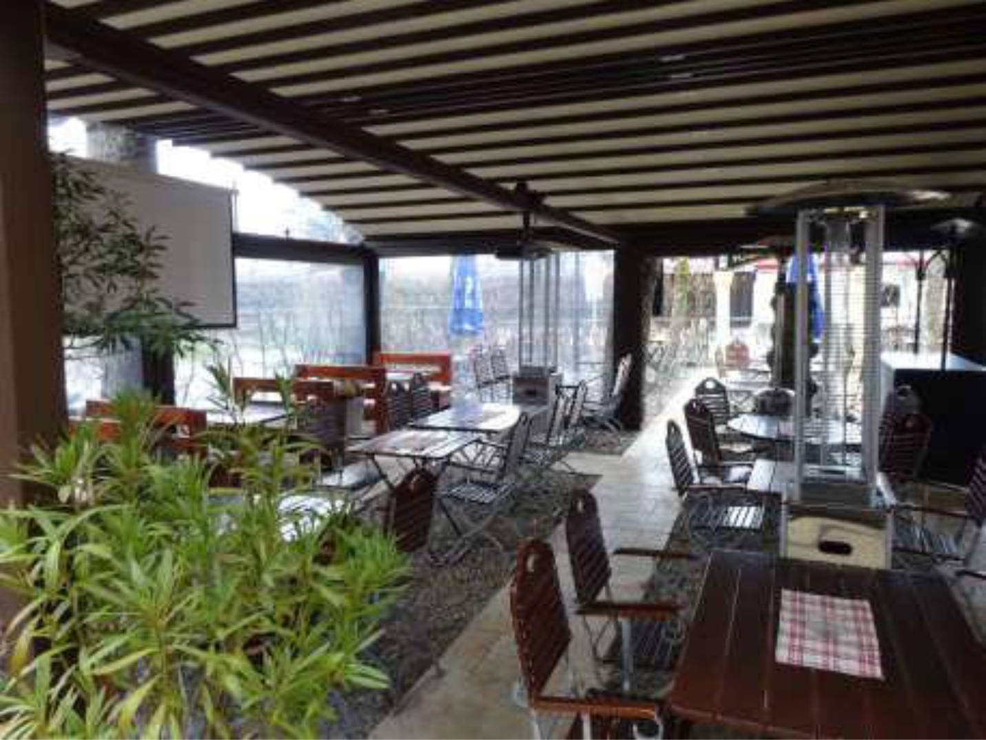 Außenanlagen: Asphaltfläche für Kfz-Stellplätze und Biergartenfläche