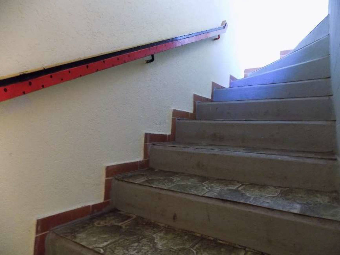 Treppen vom KG bis EG; Betontreppe mit PVC-Belag; vom EG bis DG Betontreppe mit Kunststeintritt- und Setzstufenbelag