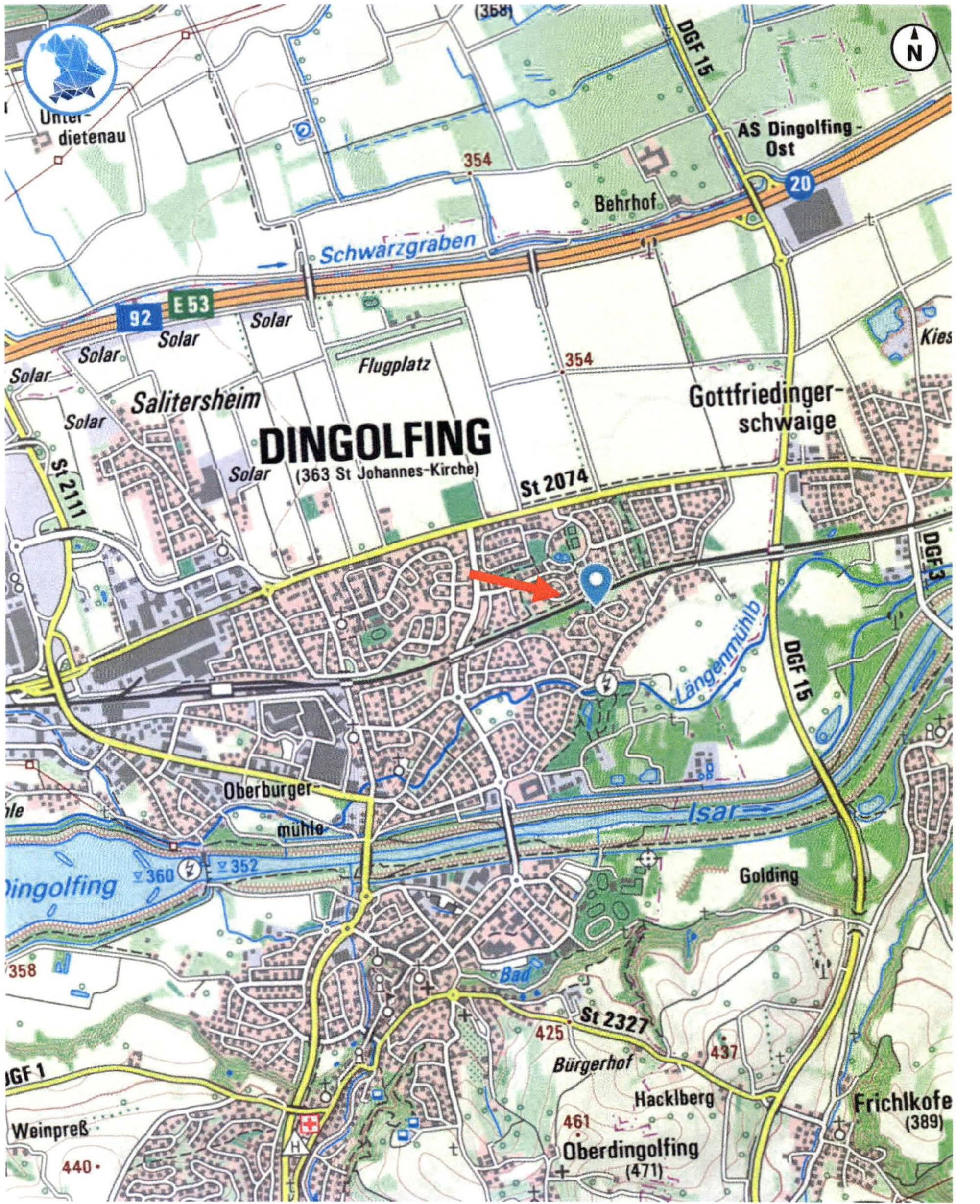 innerörtliche Lage: Dingolfing (Wohngebiet) Die Entfernung zum Ortszentrum beträgt ca. 1,5 km; Geschäfte des täglichen Bedarfs im Hauptort; Schulen und Arzte in Dingolfing; öffentliche Verkehrsmittel (Bus haltestelle) in der Nähe; Verwaltung (Stadtverwaltung) in der Nähe; gute Wohnlage;