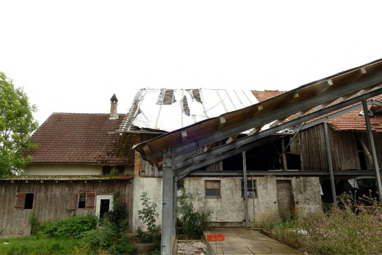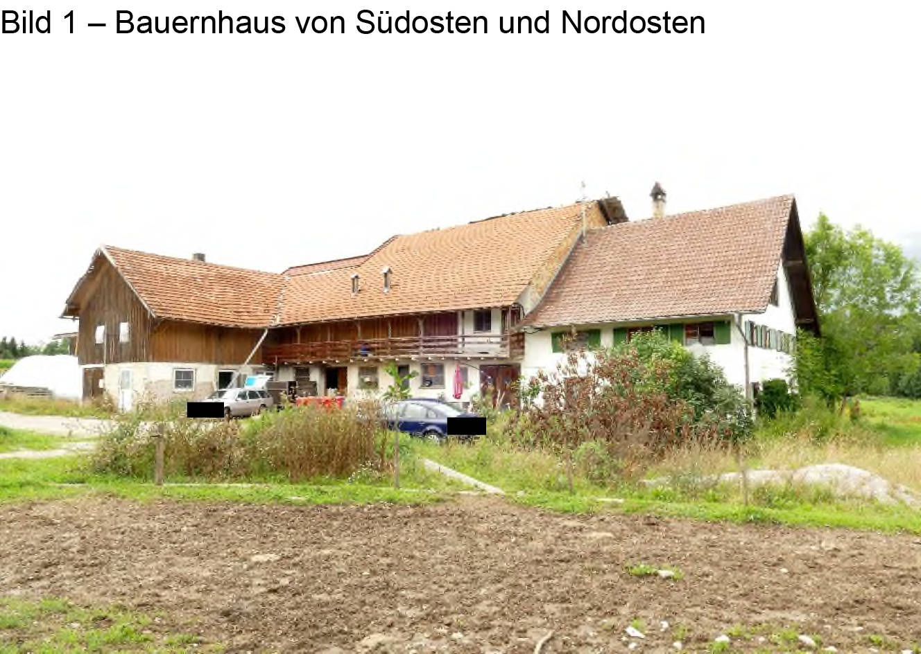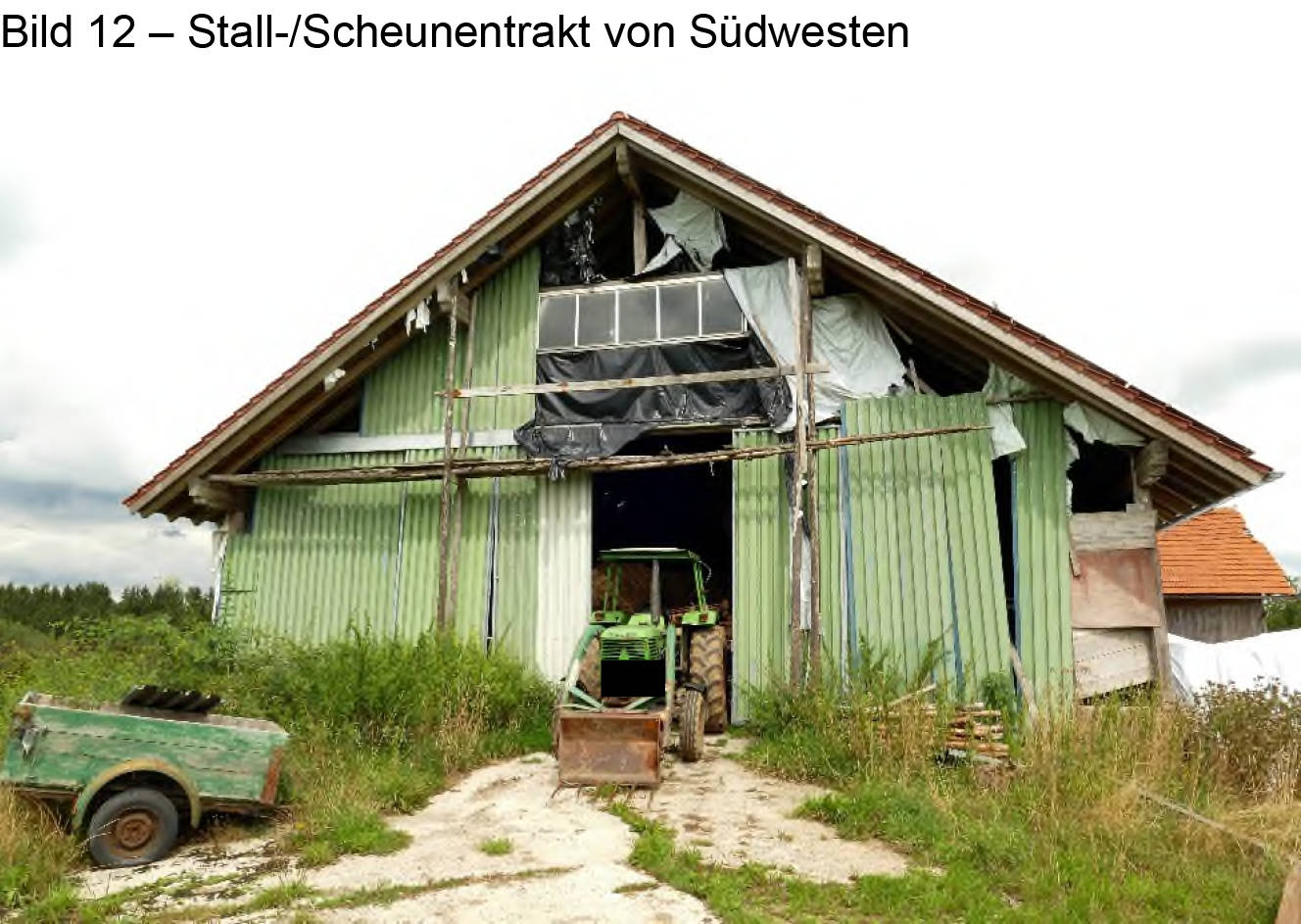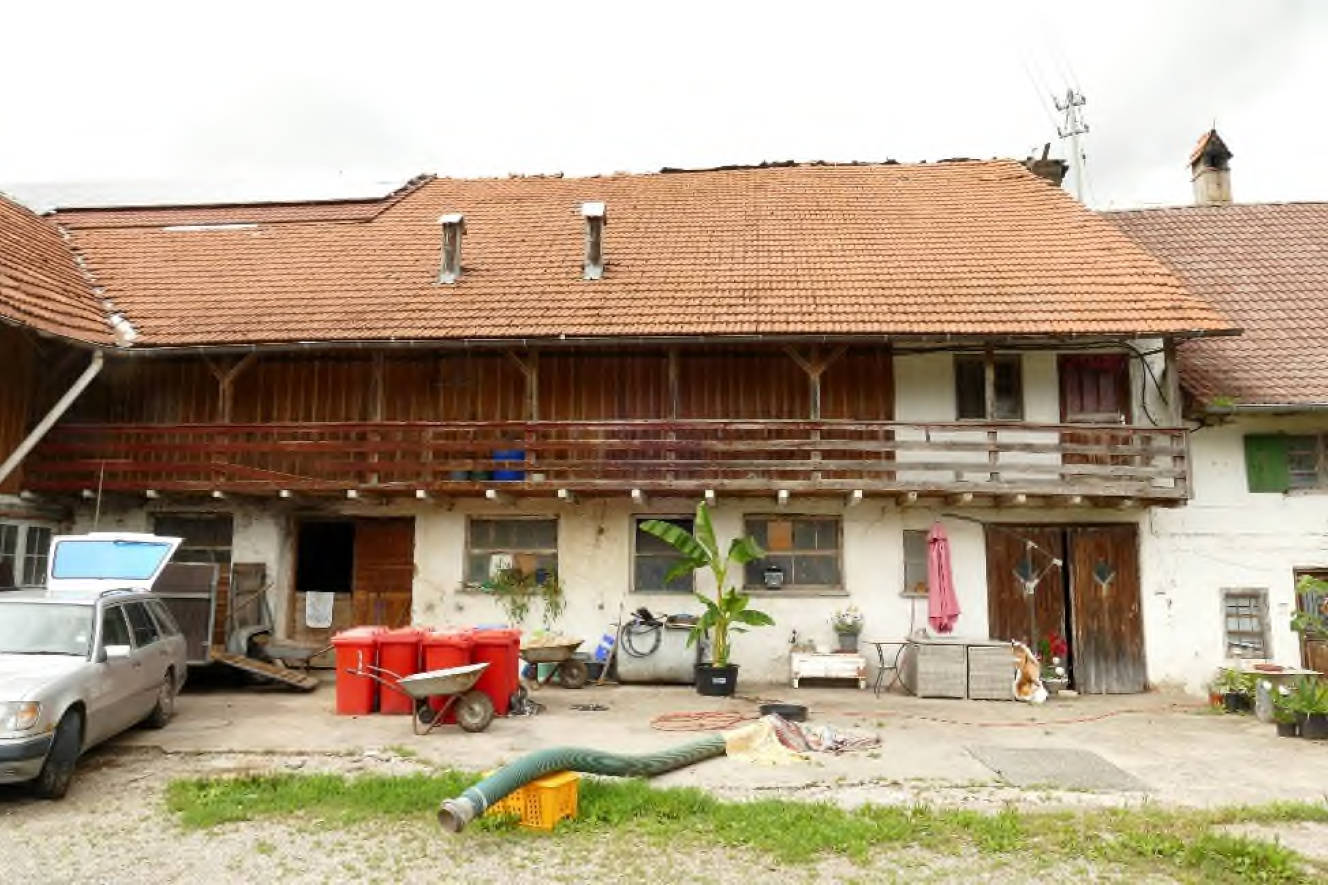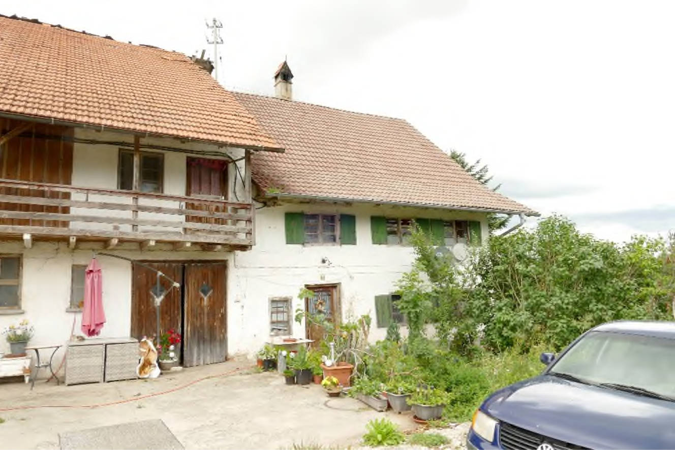 Allgemeines Eine Besichtigung der Gebäude und der Grundstücke war, wie bereits unter Pkt. 1.7 beschrieben, nicht möglich. (...) Auf den Grundstücken FlNr. 364 und 366/7 befindet sich ein Bauernhaus und auf dem Grundstück FlNr. 368 eine Gerätehalle mit Schweinestall. Das Bauernhaus besteht aus einem Wohntrakt und dem Stall-/Scheunentrakt. Der Wohntrakt besteht aus einer Teilunterkellerung, Erdgeschoss, Obergeschoss und nicht ausgebautem Dachgeschoss. Im Norden ist an das Wohnhaus ein erdgeschossiger Holzlagerschuppen angebaut.
