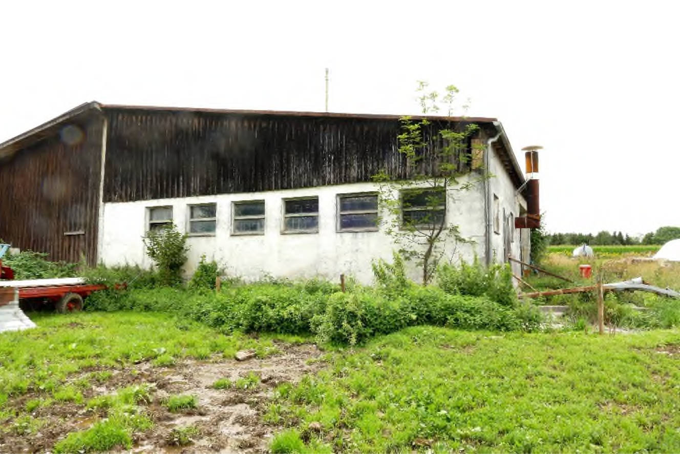 Die Gerätehalle mit Schweinestall besteht aus einer Gerätehalle und einem Schweinstall mit darunter liegender Güllegrube. Die Gerätehalle mit Schweinestall wurde um 1978 erbaut.