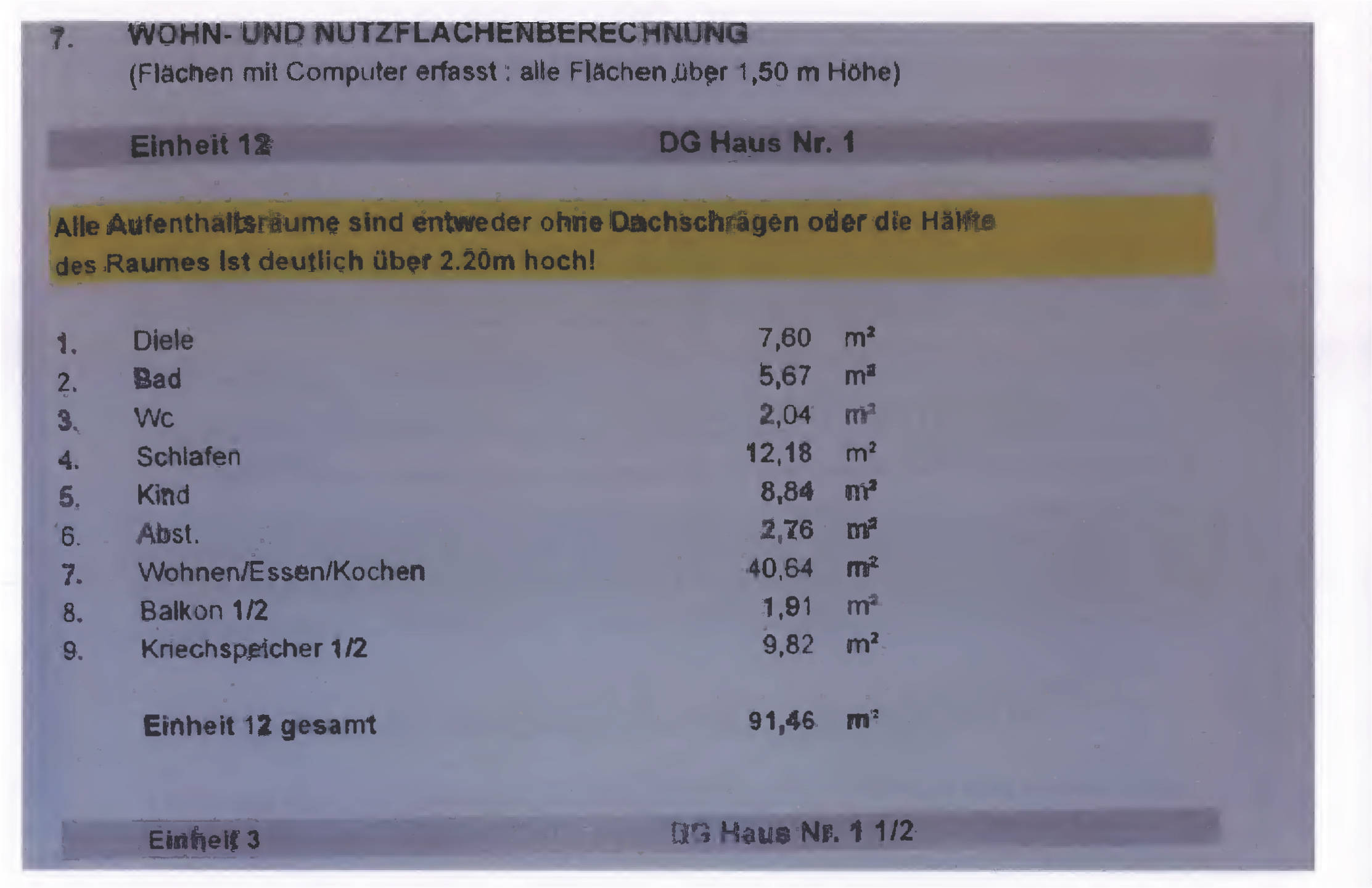 3-Zimmer-Eigentumswohnung, mit Abstellraum, Bad und Balkon sowie Kriechspeicher; Sondernutzungsrechte an einem Abstellraum und einem Kfz-Stellplatz;