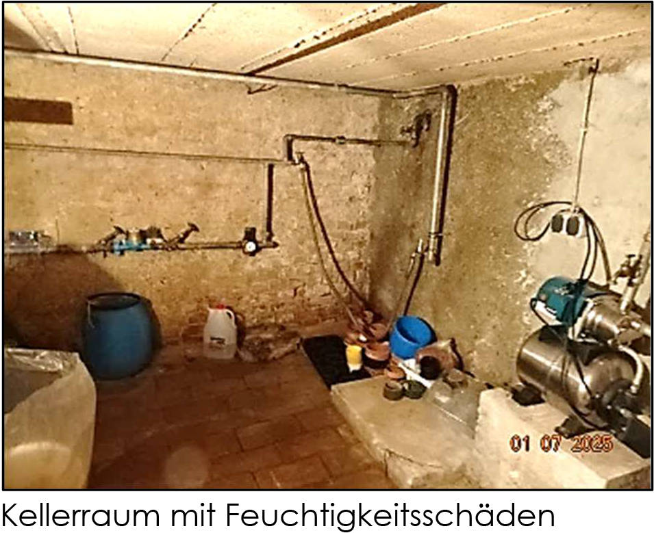7 Tage kostenlos TestenLeichte Feuchtigkeitsschäden im Kellerbereich. Sanierungsbedarf an der Außenfassade.