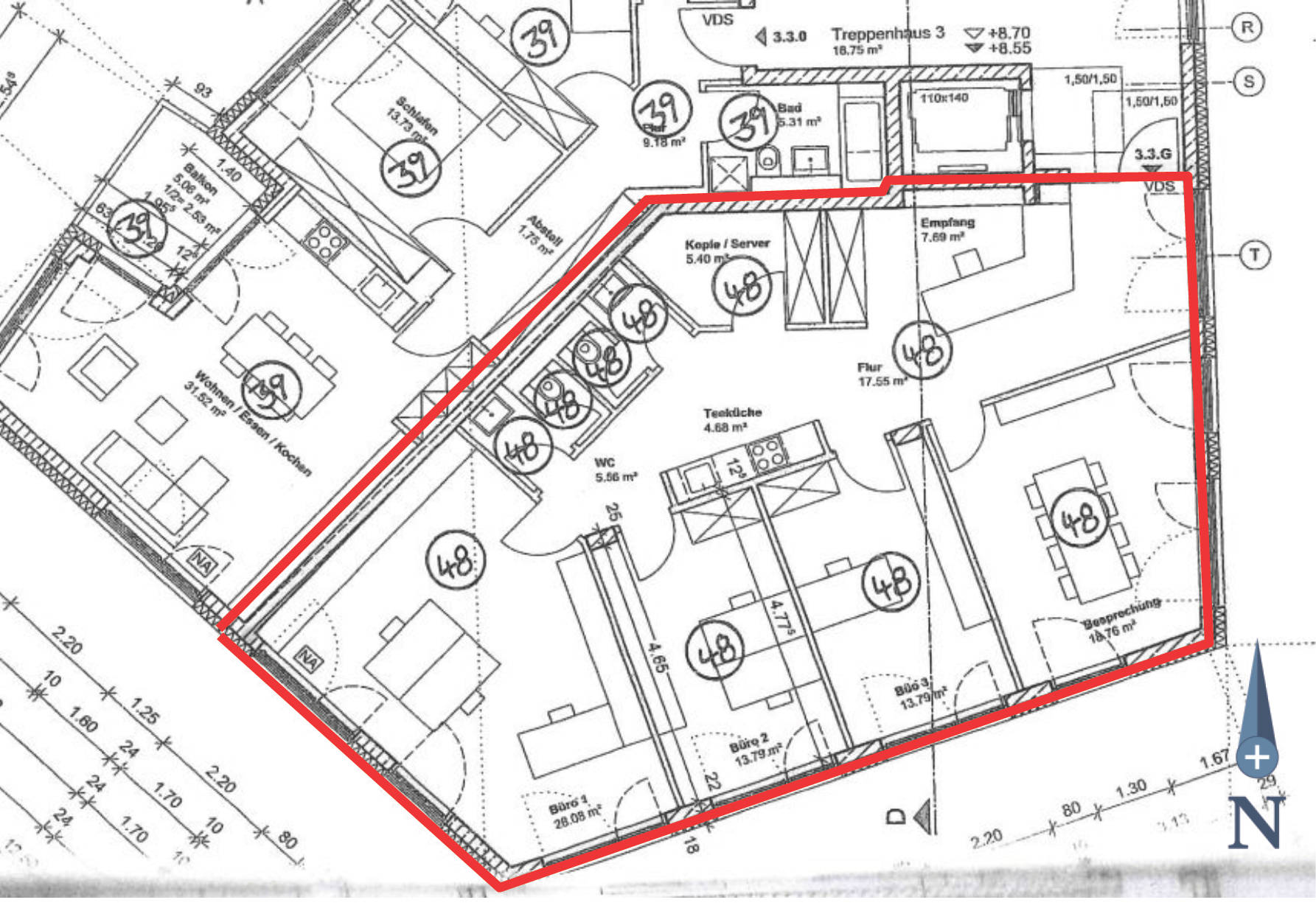 7 Tage kostenlos TestenLfd.Nr. 2: Gewerbeeinheit im 3. OG, bestehend aus einem Empfangsbereich, drei Büroräumen, einem Besprechungsraum, einer Teeküche, zwei WCs sowie Sondernutzungsrecht an einem Behinderten-WC; Nutzfläche 115,29 m²; Baujahr 2021; Lage: 86165 Augsburg; Stätzlinger Straße 39