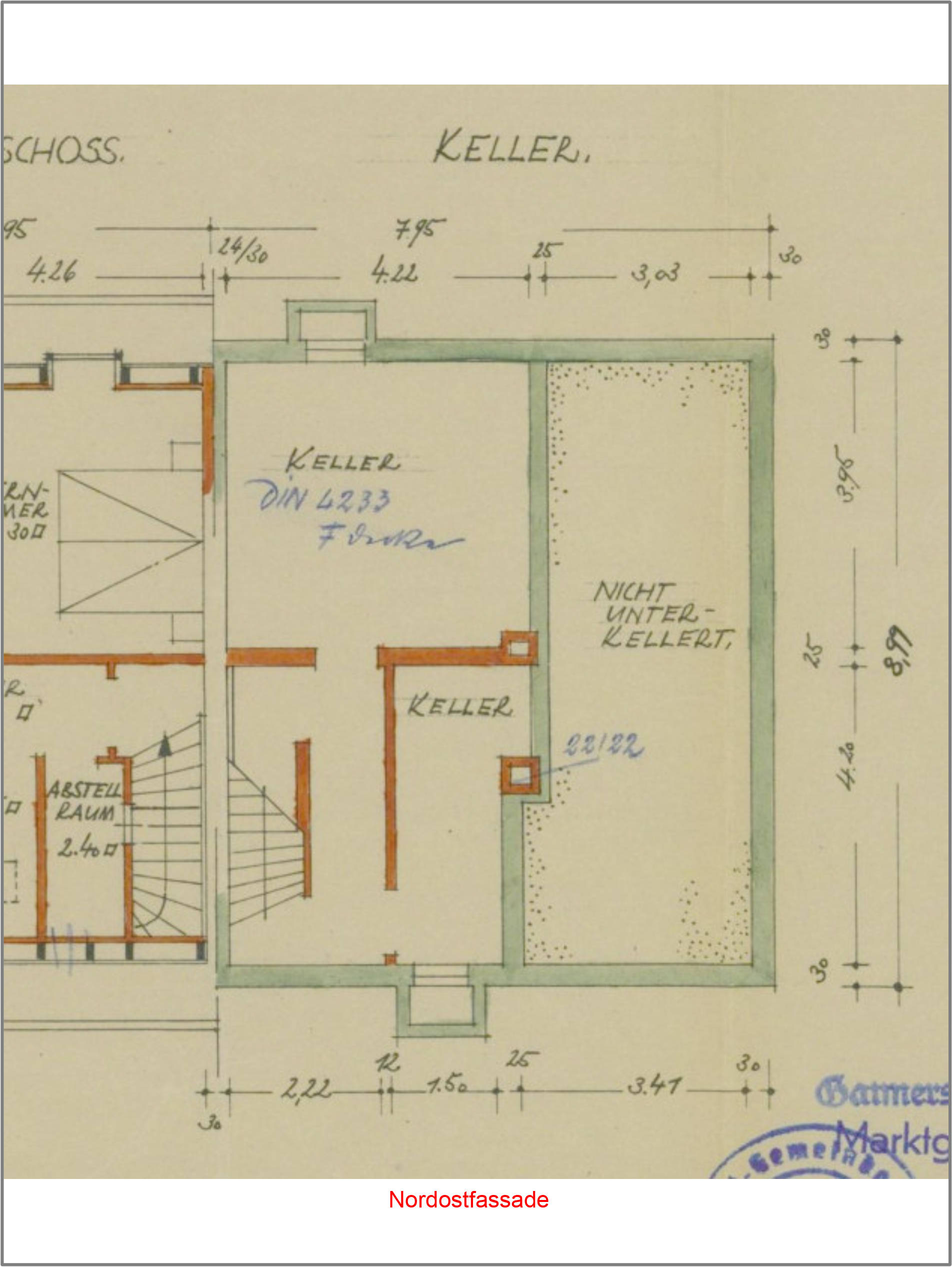 7 Tage kostenlos TestenMit Doppelhaushälfte bebautes Grundstück, Wfl. ca. 101 m², Nfl. ca. 47 m², Nebengebäude mit Garage, Nfl. ca. 30 m², Bj. ca. 1954/1955;