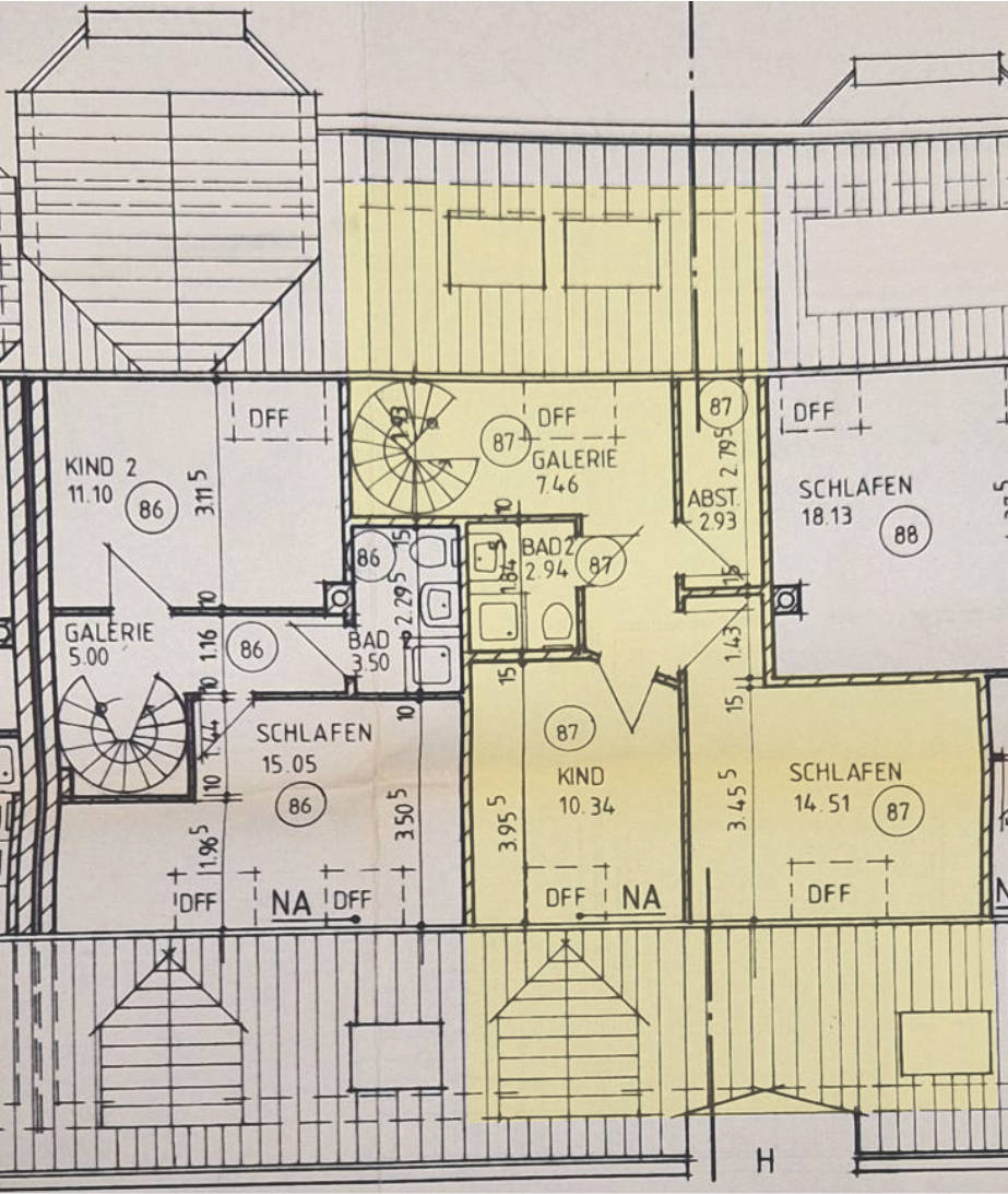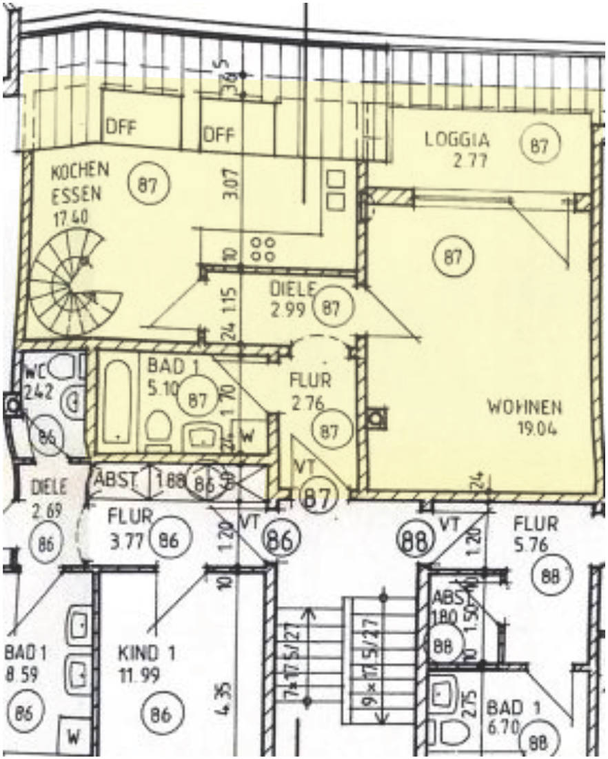 7 Tage kostenlos TestenLfd.Nr. 1: 3-Zimmer-Maisonette-Wohnung im 1. und 2. Dachgeschoss mit Dachspitz und Keller; Baujahr 1987, Wohnfläche: ca. 86 m²