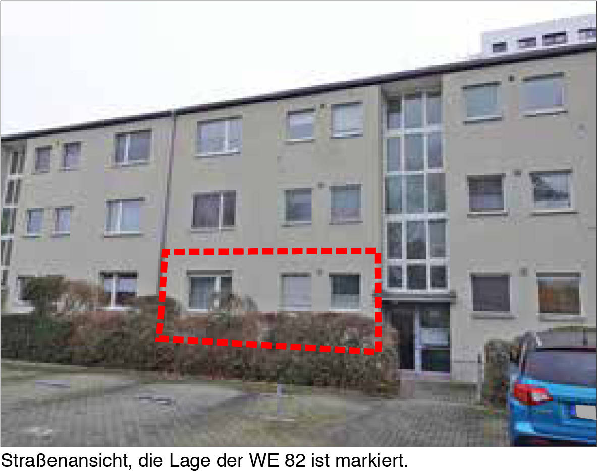 7 Tage kostenlos TestenNach Mitteilung der Gutachterin handelt es sich um eine im Erdgeschoss liegende Wohung eines dreigeschössigen Mehrfamilienwohnhauses aus dem Baujahr 1964, welche vermutlich aus Flur, Küche, Bad und 2 Zimmern nebst Balkon besteht. Die Wohnfläche beträgt laut der Teilungserklärung rd. 59,42 qm². Die weiteren Einzelheiten können dem im Zimmer 118 ausliegendem Gutachten entnommen werden.