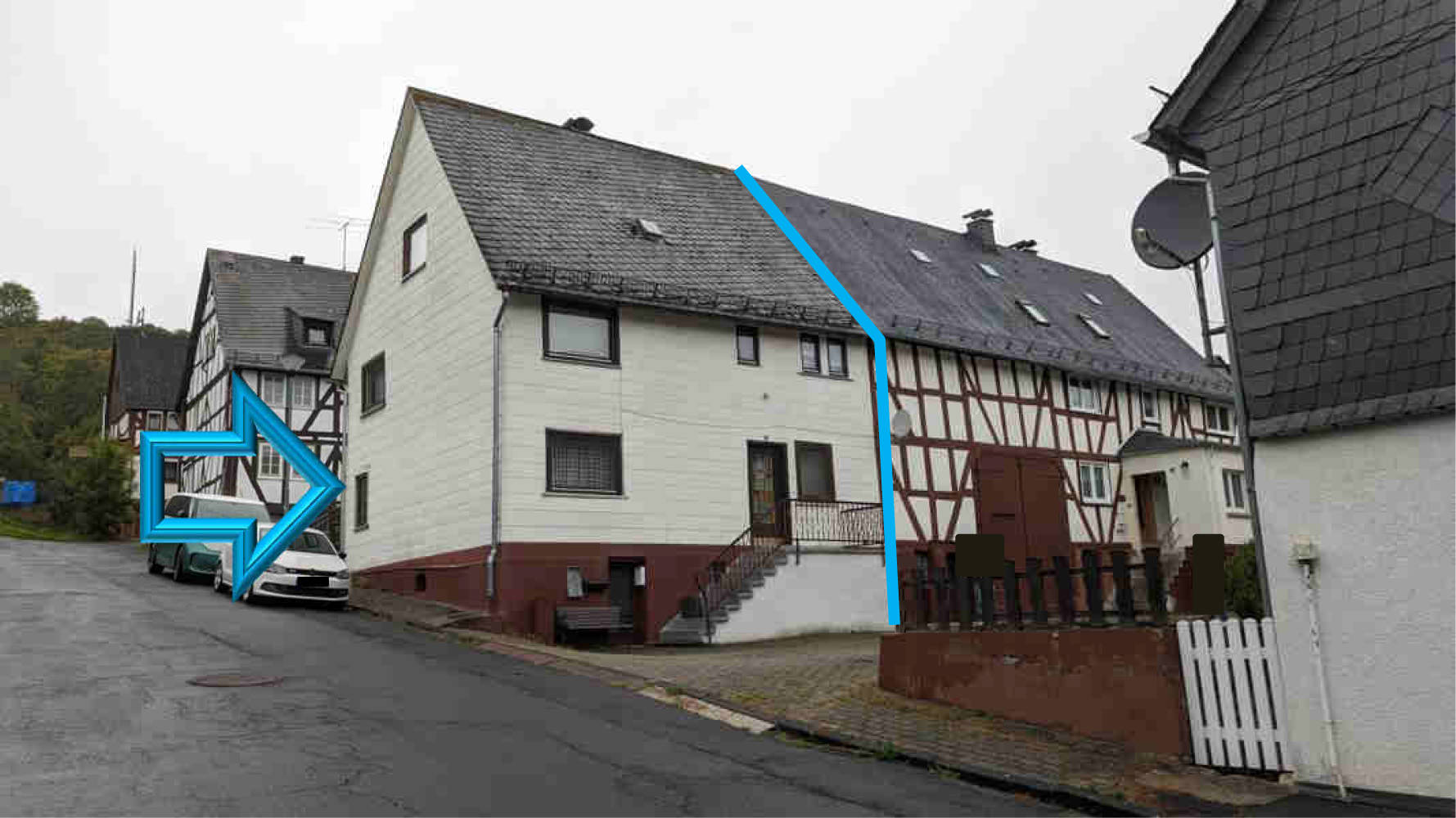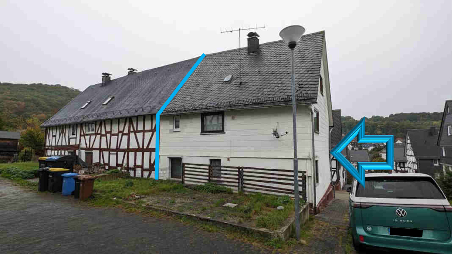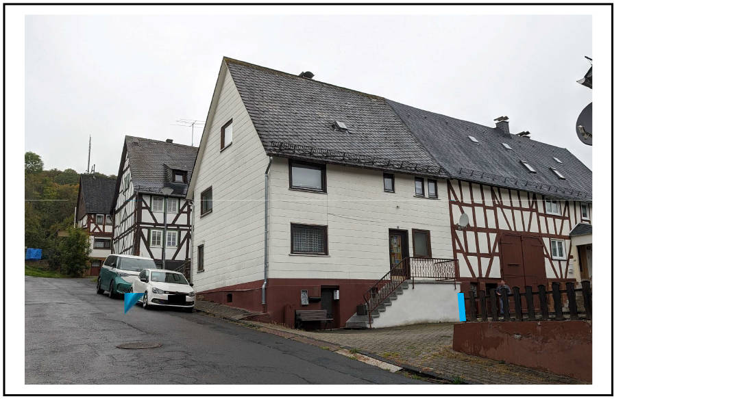 Nr. 1: Einfamilienhaus mit 2 Küchen und 2 Bädern, Fachwerkbau, Ursprungsbaujahr vmtl. vor 1900, Einzelölöfen.