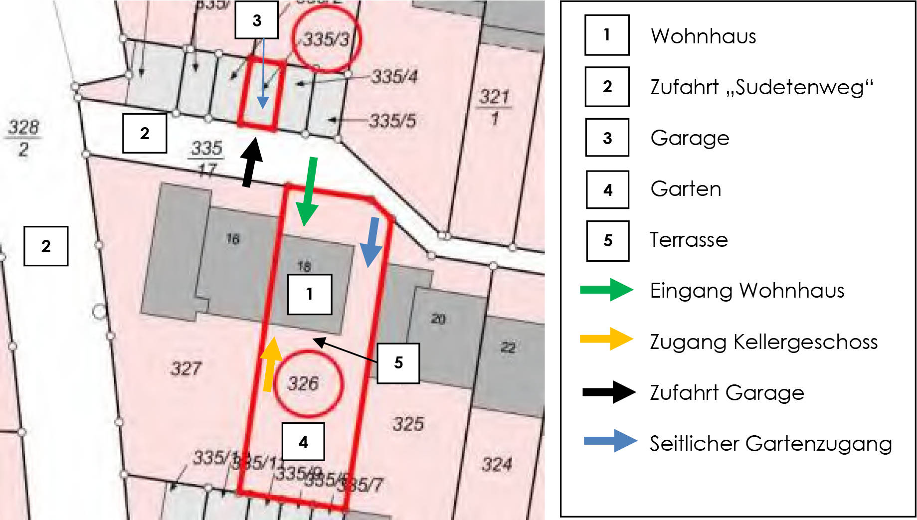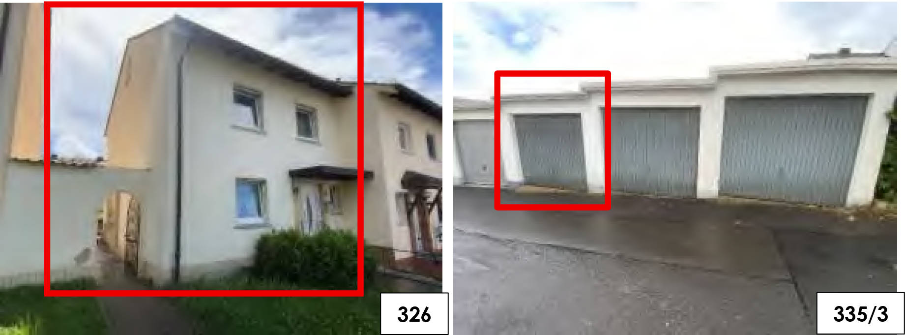 Das zu bewertende Flurstück 335/3 ist mit einer PKW-Garage einer Garagenanlage bebaut und liegt schräg gegenüber dem mit einem Reihenendhaus bebauten Flurstück 326. Das Garagengrundstück ist vollständig bebaut.