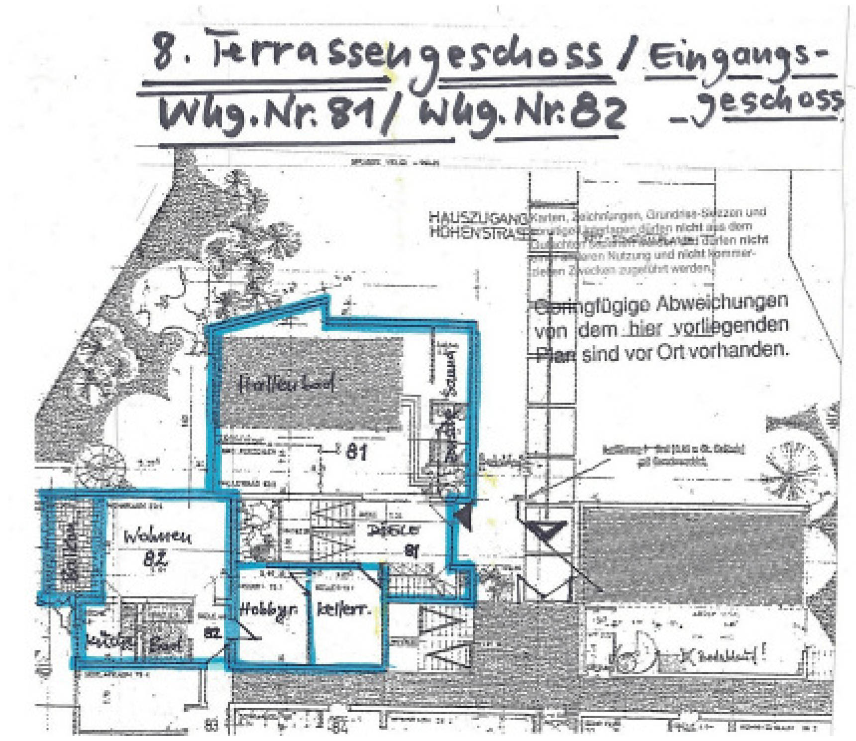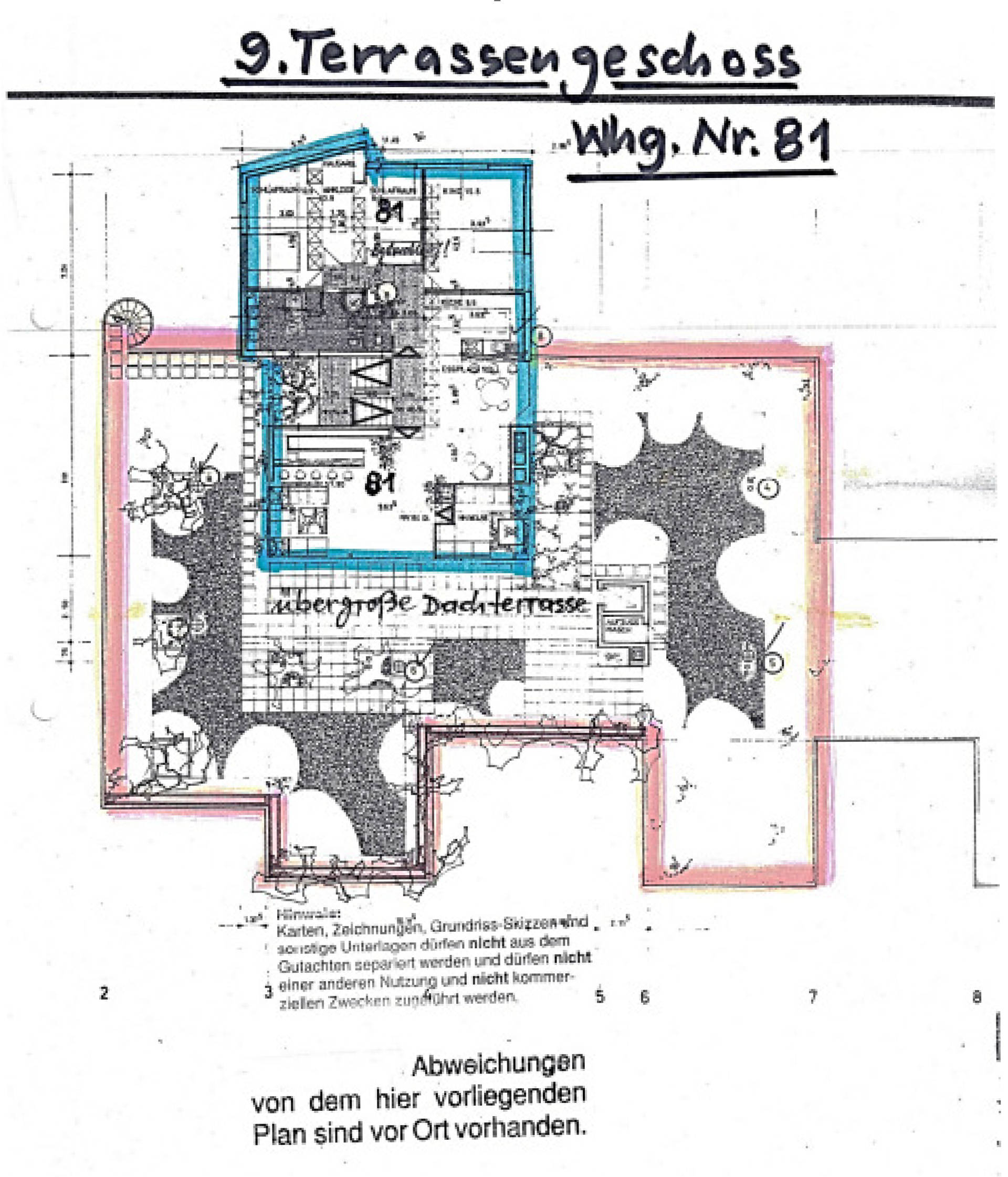 7 Tage kostenlos Testengroßzügige Eigentumswohnung (Penthousewohnung), bestehend aus großer Wohnung Nr. 81 und kleiner Wohnung Nr. 82, die baulich als wirtschaftliche Einheit miteinander verbunden sind, gelegen im 8. und 9. Terrassengeschoss, sowie Kellerräume im 7. Terrassengeschoss in einem mehrgeschossigen Mehrparteienwohnhaus als Terrassenhaus mit insg. ca. 35 Wohneinheiten und einer Tiefgarage. Baujahr ca. 1971/1972, zusammen ca. 477 m² WoFl, keine ausreichende Innenbesichtigung erfolgt, erhebliche Schäden