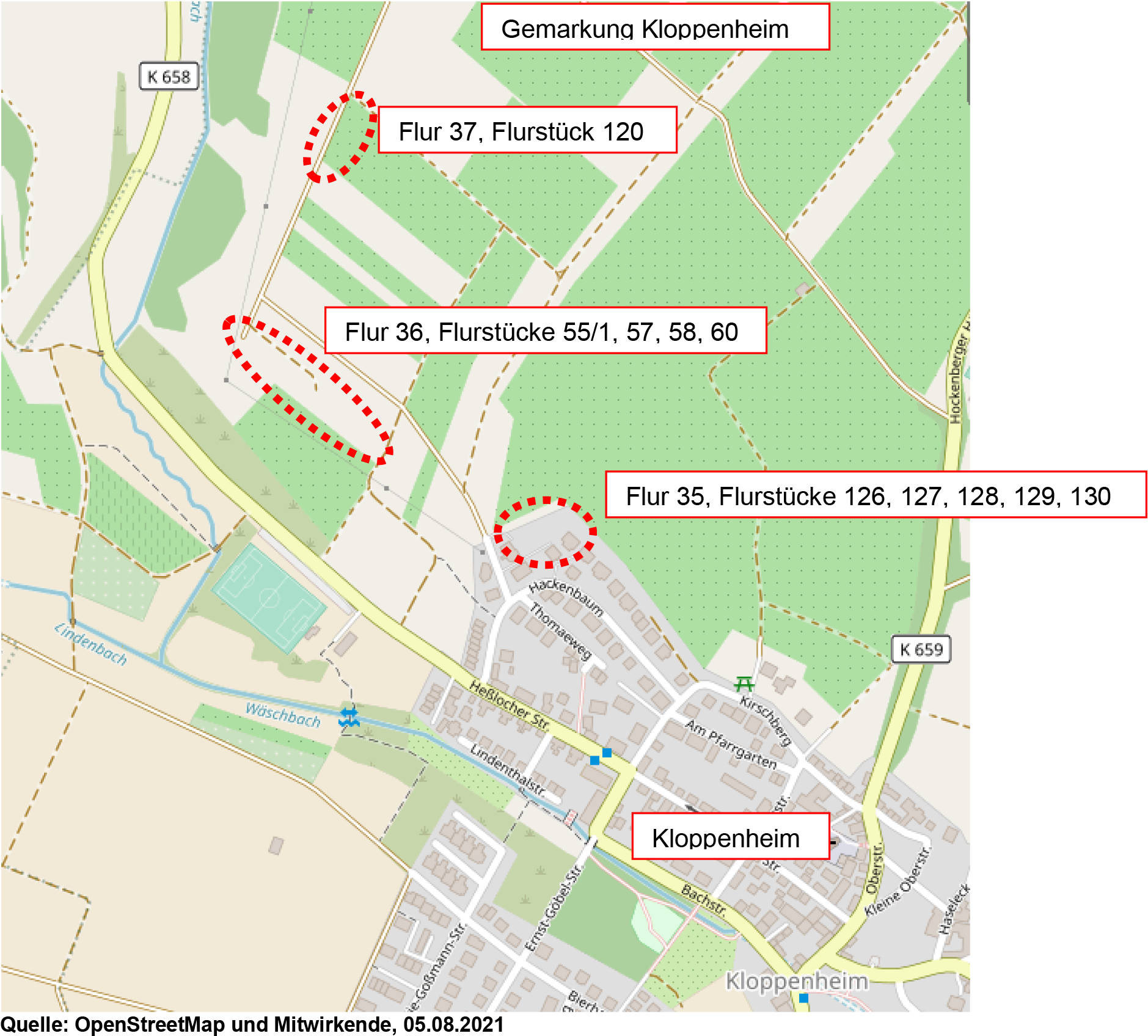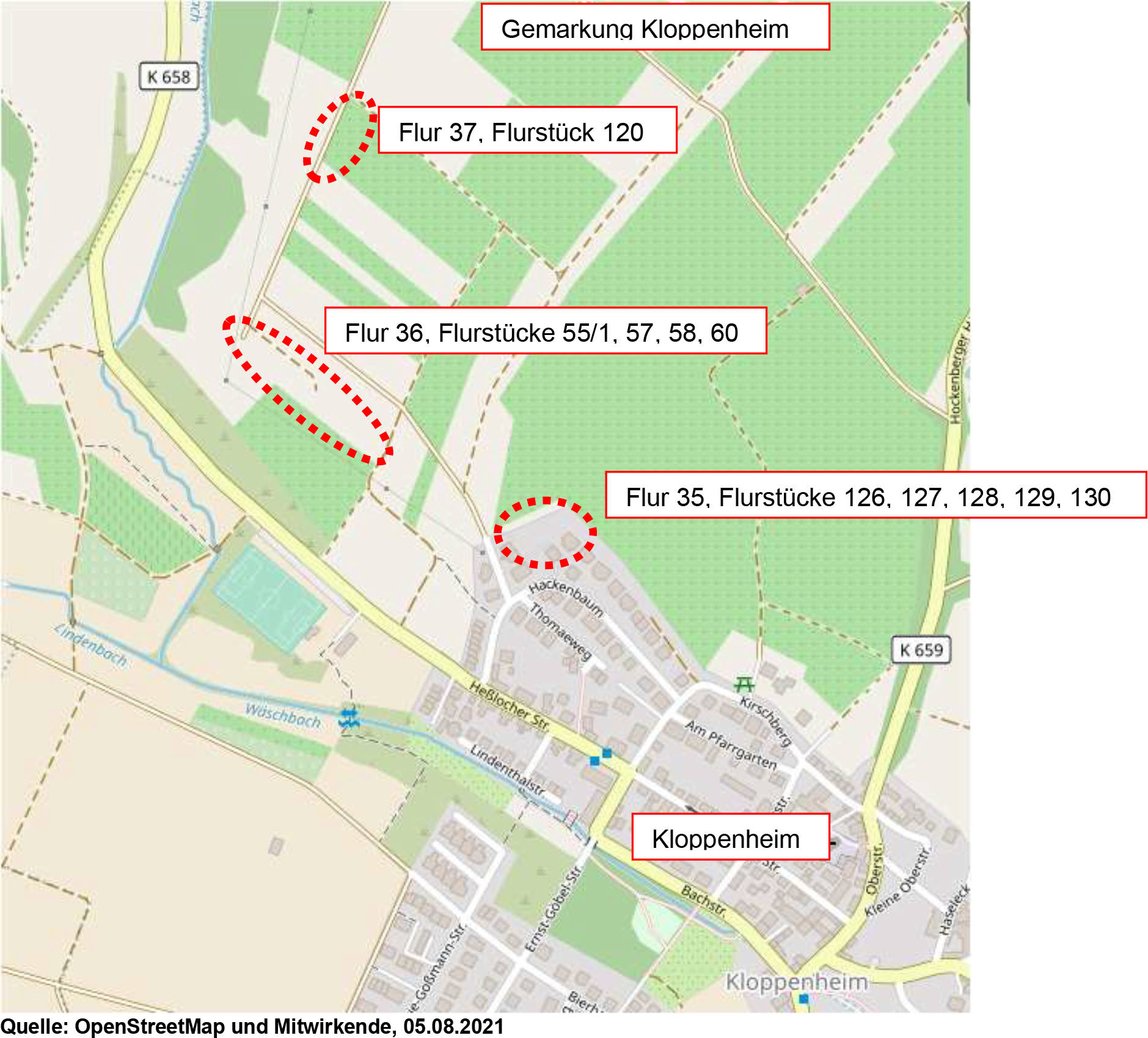 Grundstücke des Grundbuchs von Kloppenheim Blatt 1113 lfd. Nr. 2,3,4,8,9