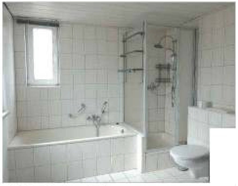 Sanitärausstattung: Bad im EG mit Wanne, Dusche, WC und Waschbecken (modernisiert, Fliesen raumhoch)