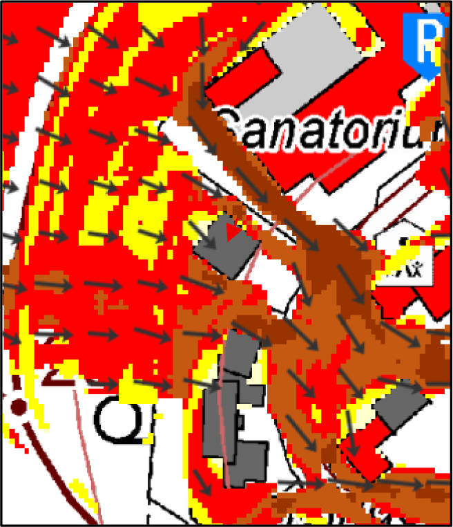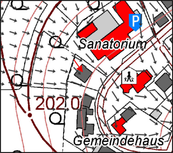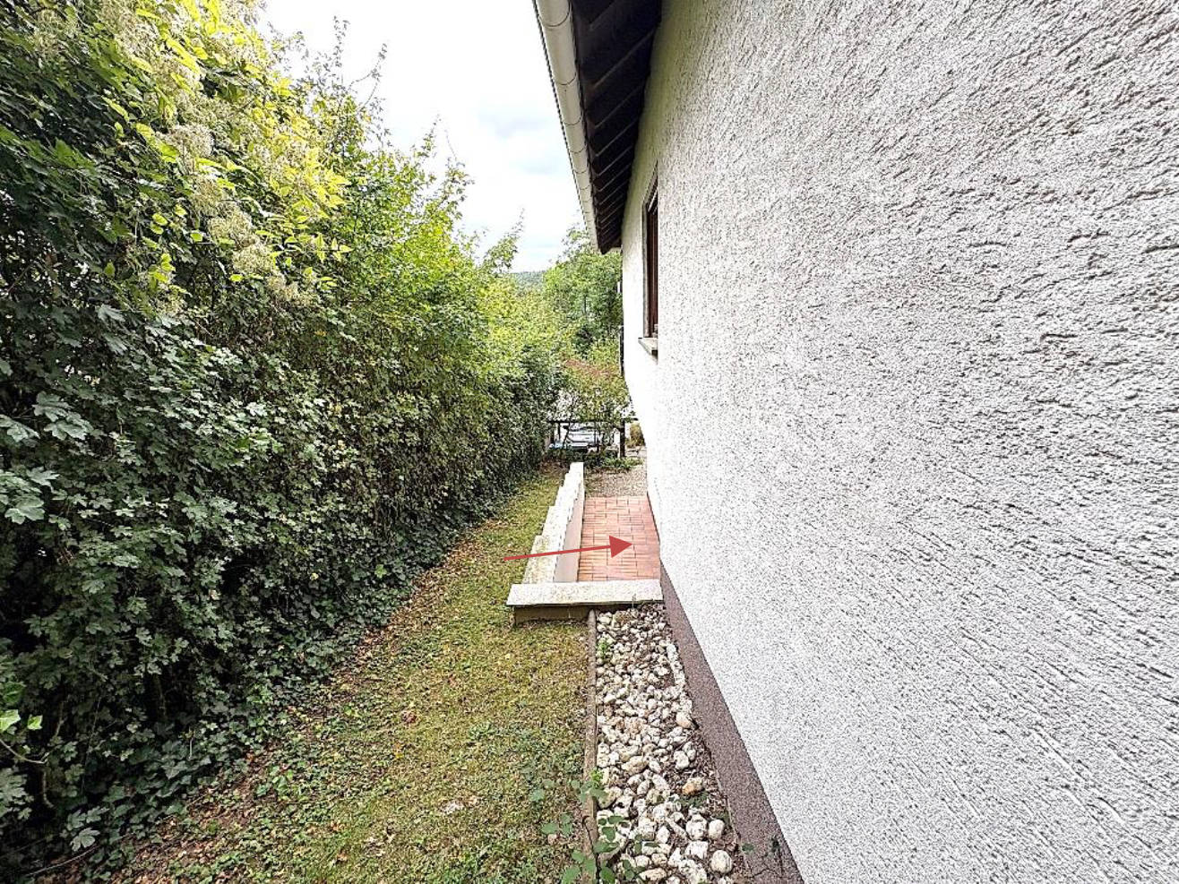 Baugrund, Grundwasser (soweit augenscheinlich ersichtlich) und Einflüsse durch Starkregen: Es handelt sich um gewachsenen, normal tragfähigen Baugrund. Eine unmittelbare Gefahr durch Hochwasser besteht nicht. Es ist jedoch nicht auszuschließen, dass das Grundstück bei außergewöhnlichen oder extremen Starkregenereignissen von der Bergseite aus durch den gebündelten Abfluss von Niederschlagswasser beeinträchtigt werden kann.