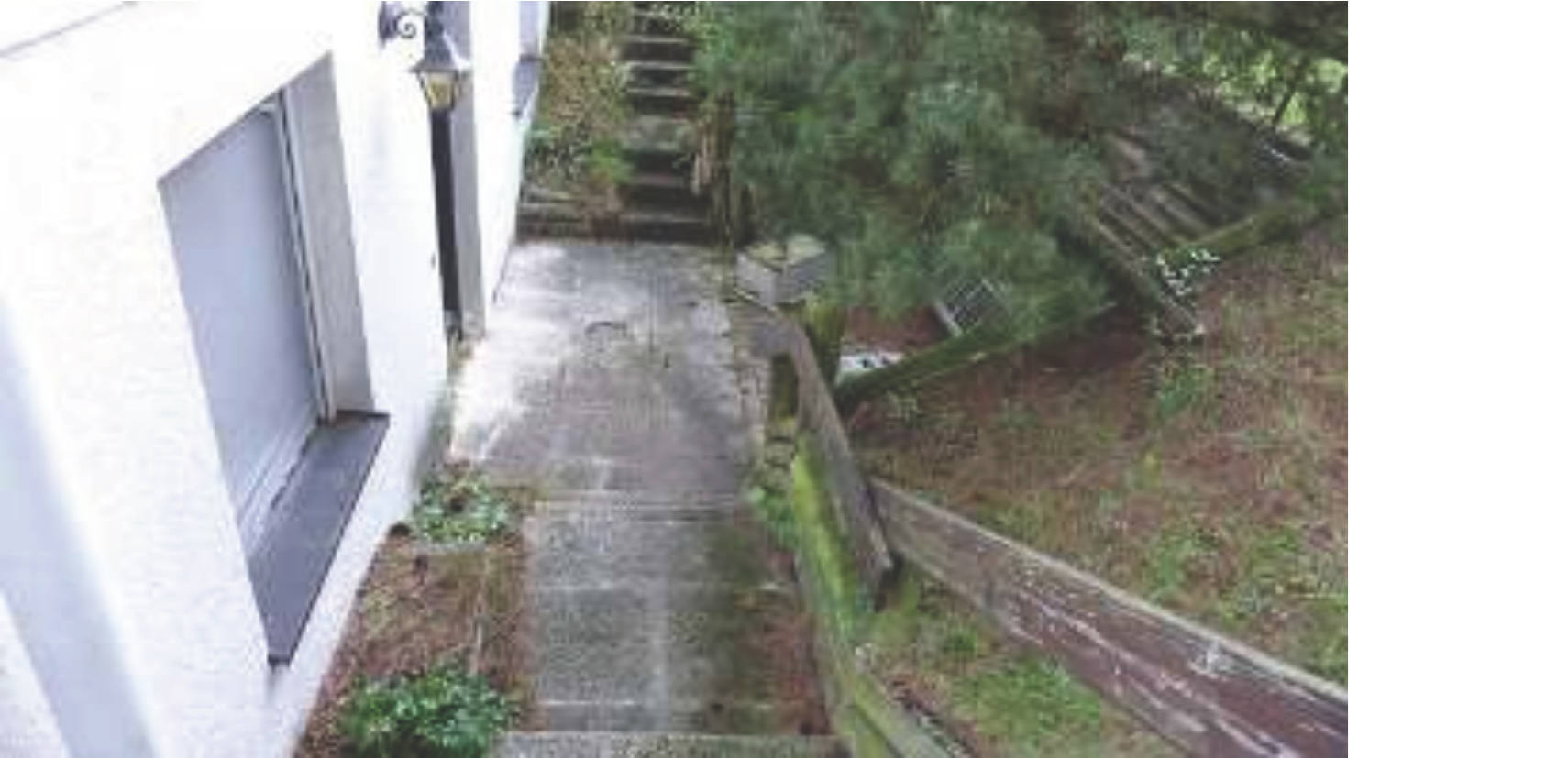 Das ursprüngliche Gebäude wurde in den letzten Jahren nur geringfügig renoviert; Heizkessel und Warmwasserspeicher stammen aus 2005, das Bad im DG wurde erneuert. Instandhaltungs- und Modernisierungsstau sind vorhanden, insbesondere in Bereichen von Küchen, Sanitär, und Außenanlagen. Es bestehen Feuchte- und Putzschäden an Keller und Außentreppen, Schäden an Außenanlagen und Terrassenbelag, sowie altersbedingte Abnutzungen am Gebäude.