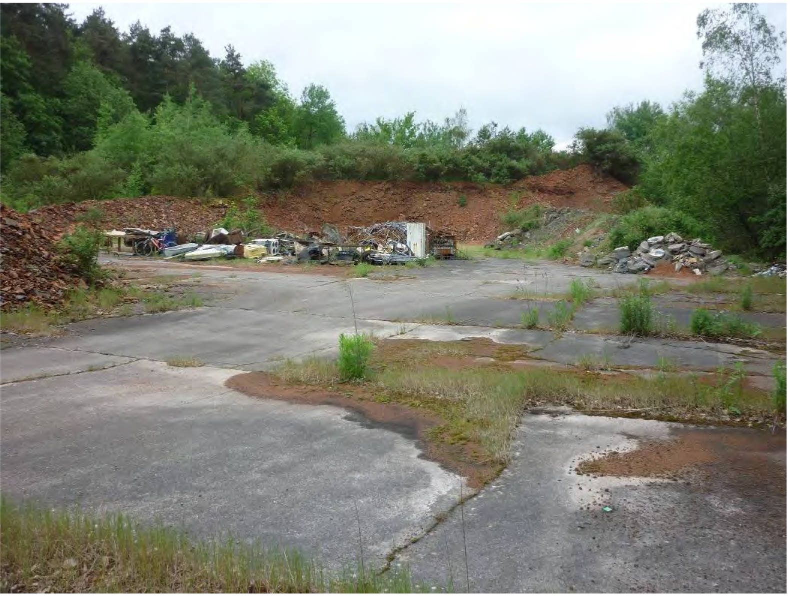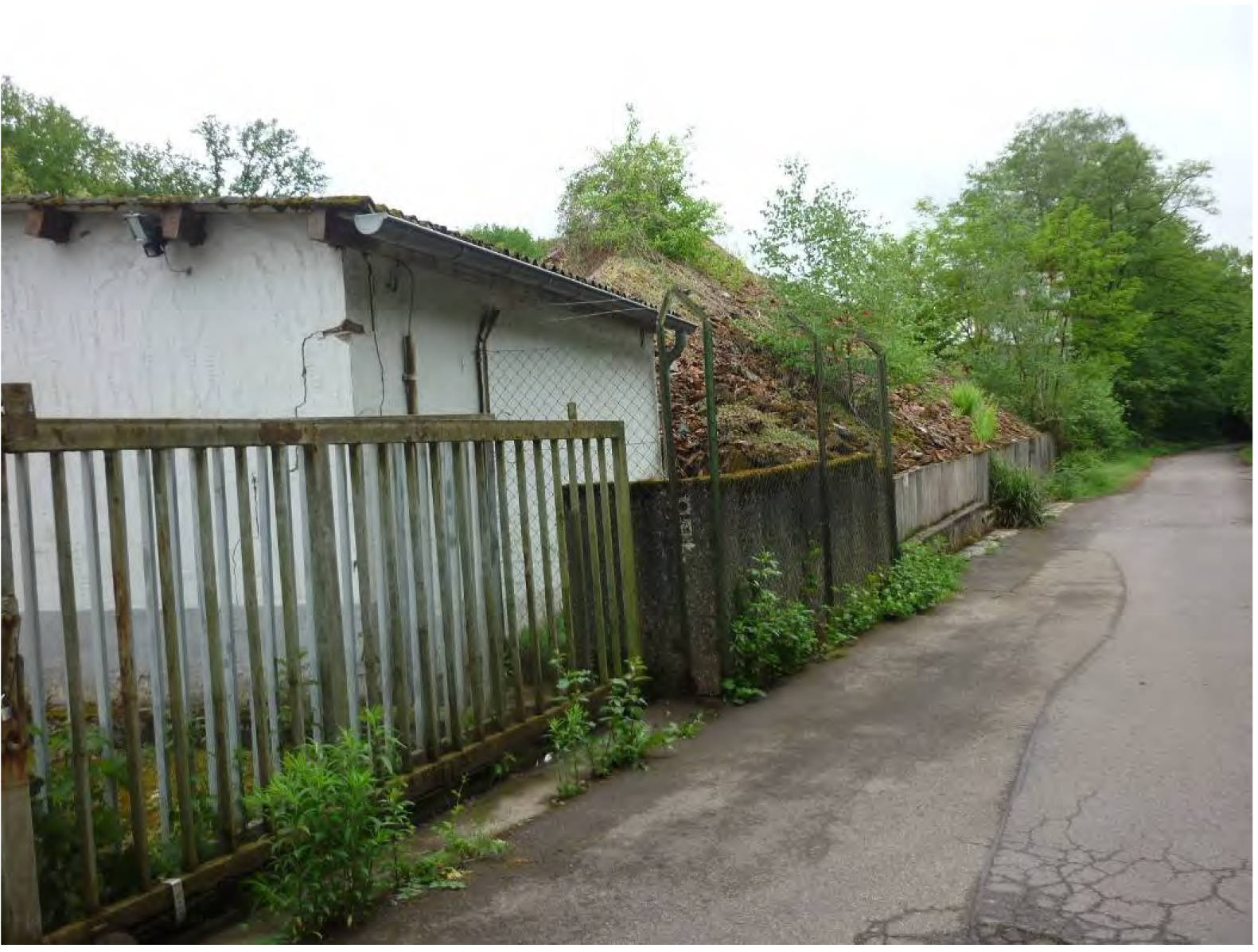 unbebautes Grundstück; wurde zum Zeitpunkt der Begutachtung im Zusammenhang mit dem nördlich angrenzenden Betriebsgrundstück (Flurstück 2/250) teilweise als Lagerfläche für Ziegelsplitt genutzt. Teil der Fläche ist mit Beton befestigt. Längs der östlichen Grundstücksgrenze untergeordneter Grenzbewuchs und Lagerung von asbesthaltigen Baustoffen und Müll.