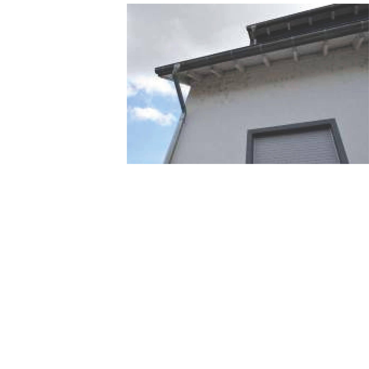 Satteldach mit Betondachsteinen und Dämmung, Dachrinnen/-fallrohre aus Zinkblech