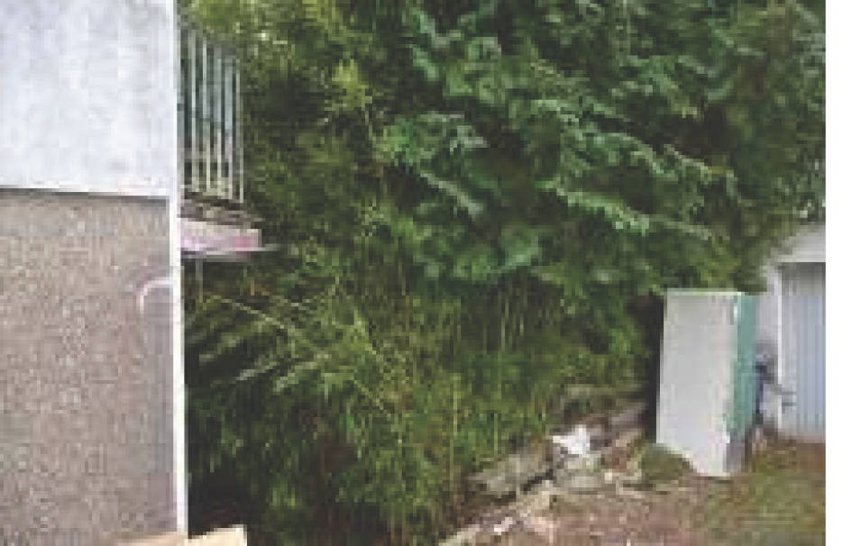 Auf dem Grundstück befindet sich eine massiv gebaute Garage aus dem Baujahr 1965, mit verputzter Außenansicht und Pultdach, eingedeckt mit Faserzementplatten. Das Tor ist als Stahlschwingtor ausgeführt, der Bauzustand ist altersgemäß und sanierungsbedürftig.