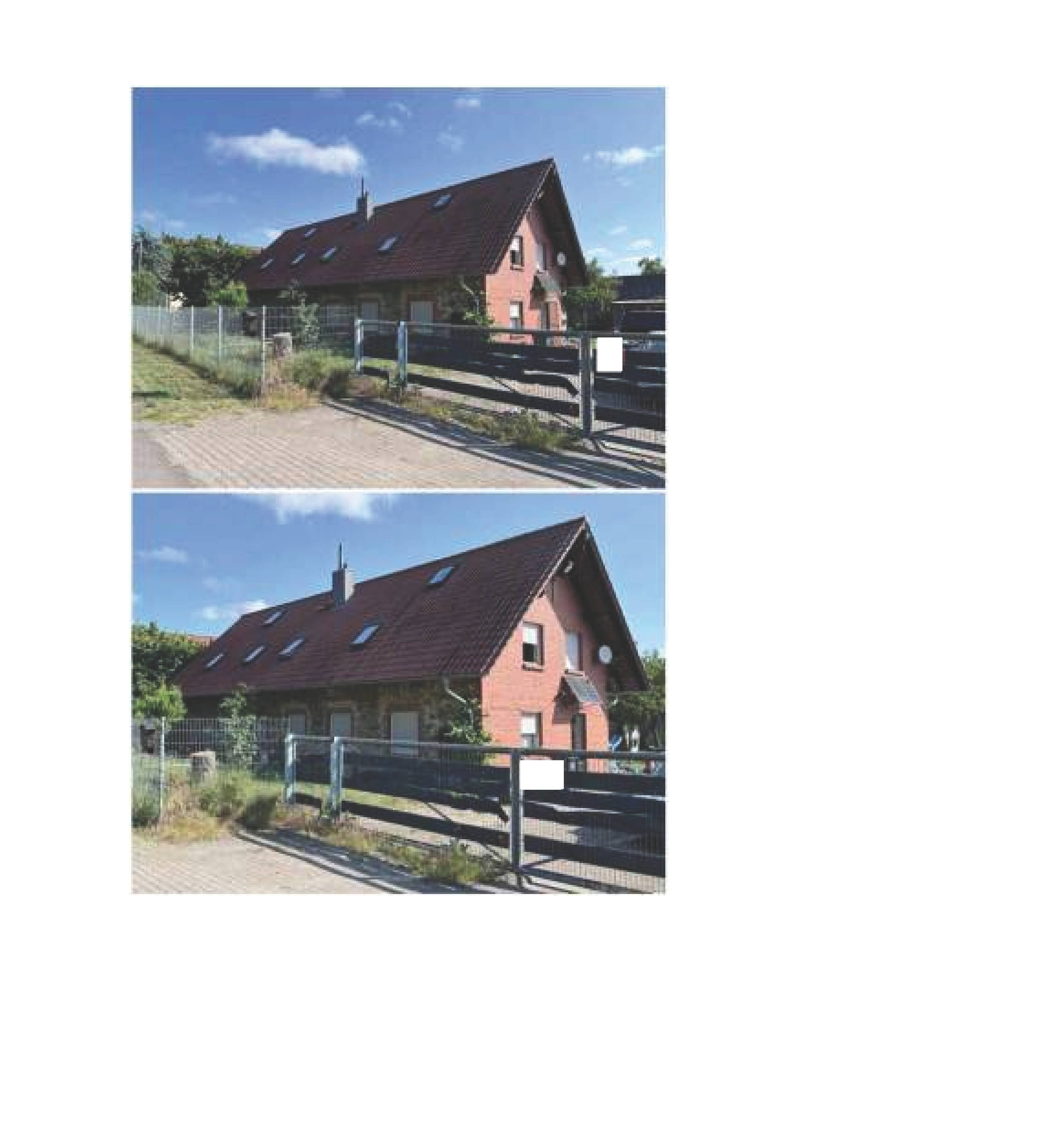 Die Bauausführung umfasst massive Ziegelwände (teilweise mit Klinkervorsatz oder Putz bzw. Natursteinverblendung), Satteldach mit Ziegeldeckung und Stahlrahmen, Bruchstein-/Betonfundamente und Geschossdecken in Trägervarianten. Fenster aus Kunststoff mit Isolierverglasung, Außenjalousien sowie mehrheitlich moderne, verriegelte Haustüren sind verbaut. Die Ausstattung ist einfach bis mittel, altersgerecht und weitgehend funktionstüchtig; punktuelle Sanierungen (Heizanlage, Sanitärausstattung, Zaunanlagen, Wärmedämmung Dach) wurden in den letzten Jahren vorgenommen.