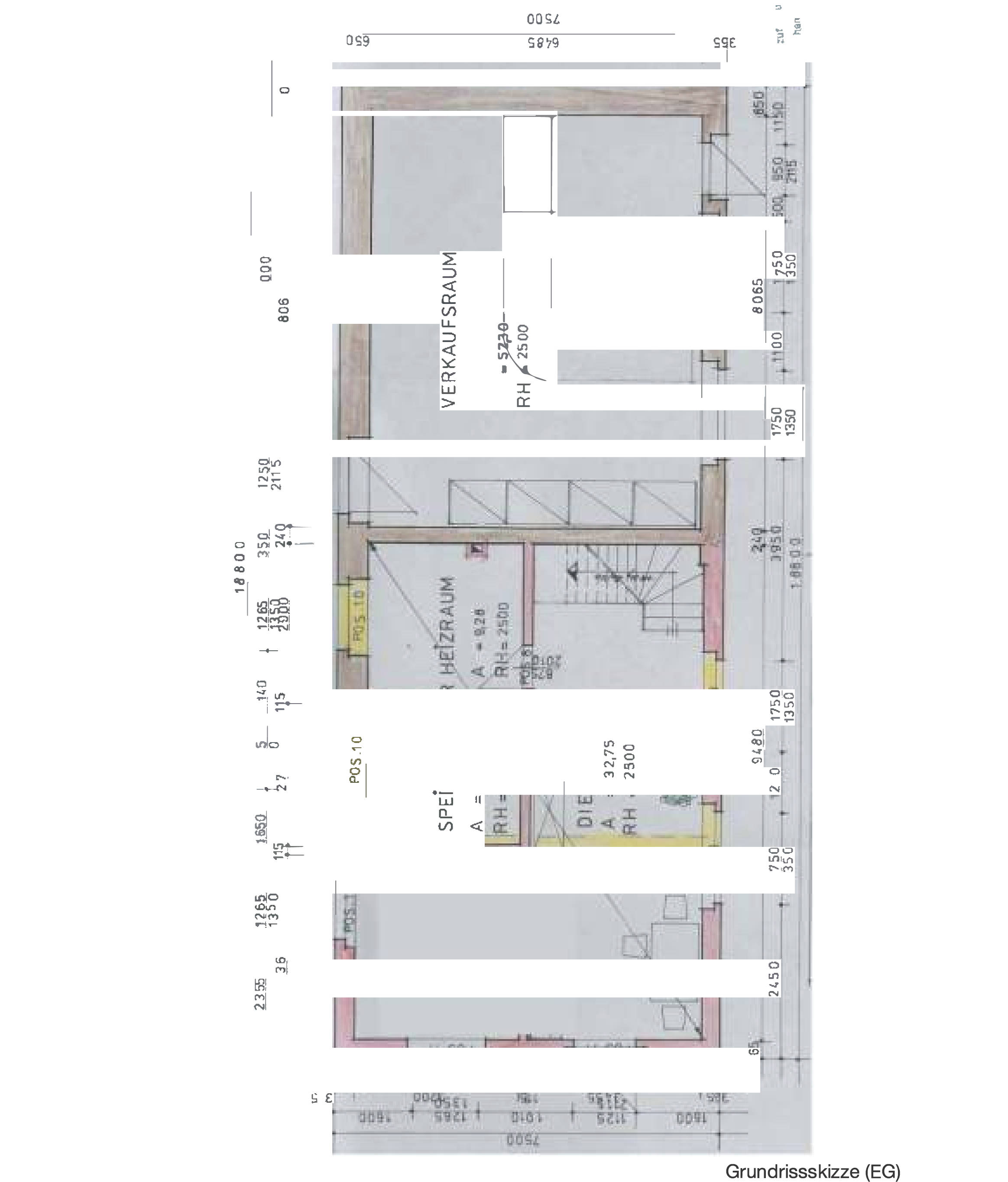 Im Erdgeschoss befinden sich ein Wohnraum, Bad/WC, Hausanschluss-/Heizungsraum, Flur sowie ein von außen zugänglicher Party-/Lagerraum;