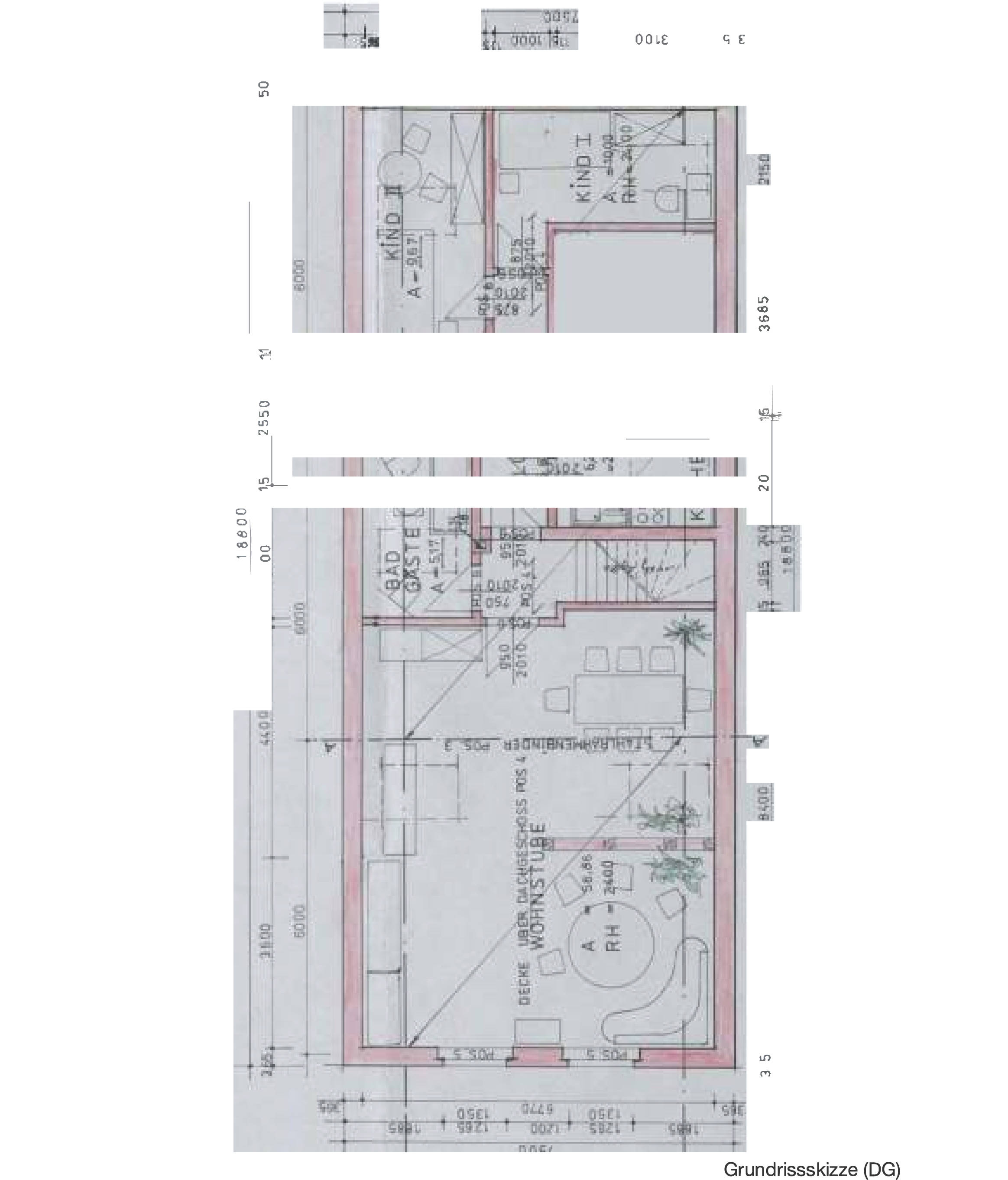 im Dachgeschoss sind vier Wohnräume, eine Küche, ein Duschbad/WC und ein Flur angeordnet.