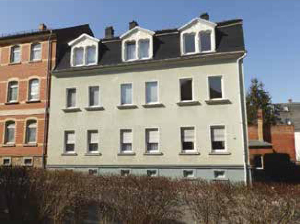Mehrfamilienhaus (Bj. 1893) mit 2 Garagen (Bj. 1920 u. 1950), ab 2000 Modernisierung, 6 Wohnungen gesamt, davon 2 bewohnt (Eigennutzung), 4 Wohnungen leerstehend, Wohnfl. gesamt: 297,09 m²