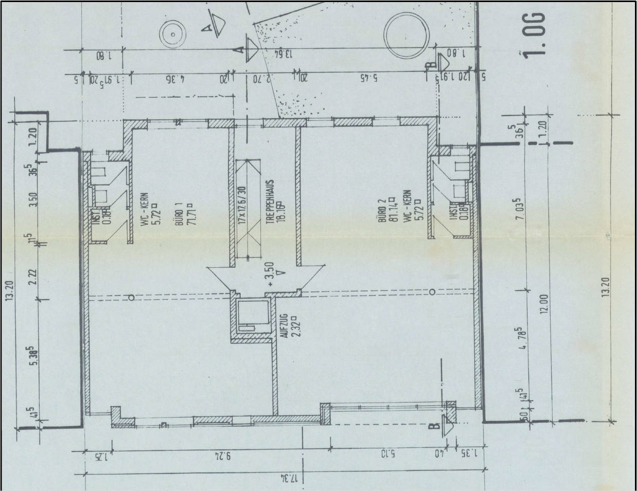 7 Tage kostenlos TestenBüroräume mit Teeküche und WC in einem viergeschoss. Wohn- und Geschäftshaus; Nutzfläche: ca. 90,0 m²; Baujahr: 1993; zum Zeitpunkt der Begutachtung leerstehend