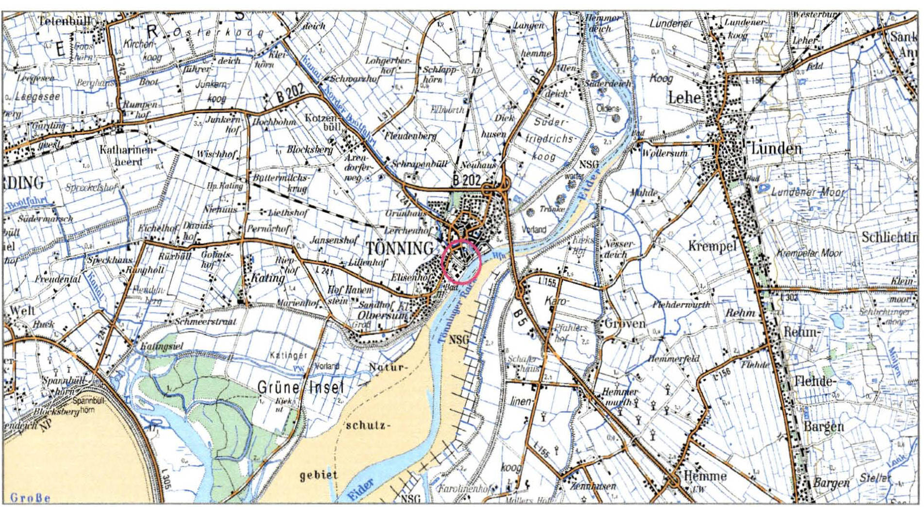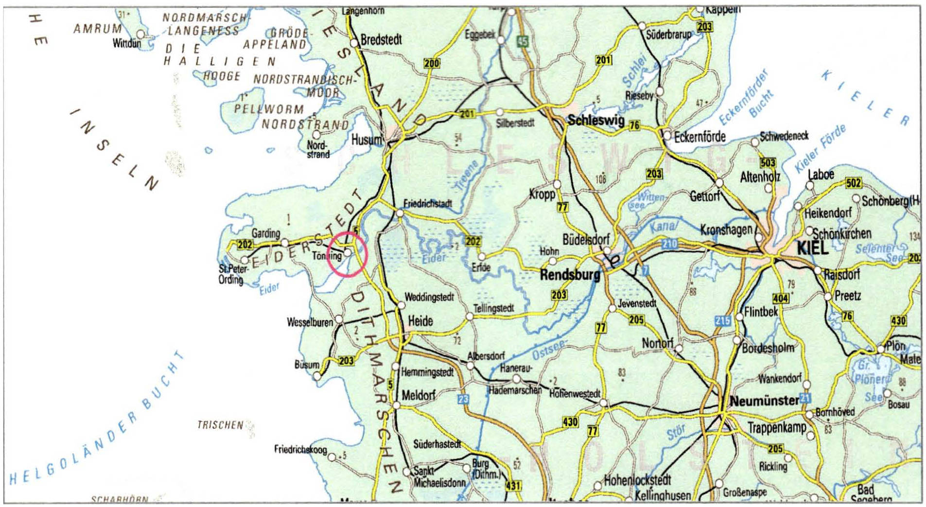 Besonderheiten: Lage nahe der Eider und in Nähe der Nordsee