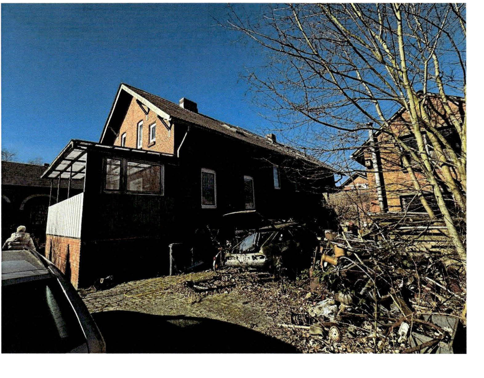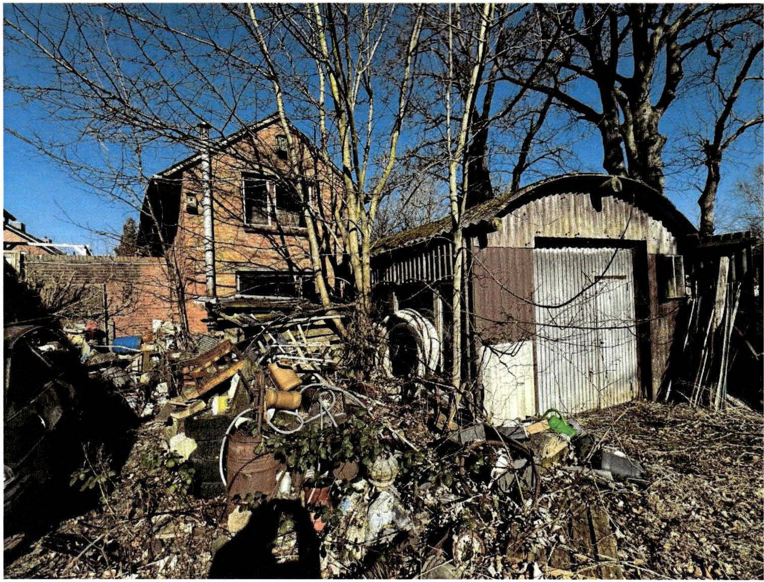 Buschbestand sowie zum Teil hoch gewachsenes Gras verfügen. Vielfach wird auf dem Grundstück Unrat gelagert.