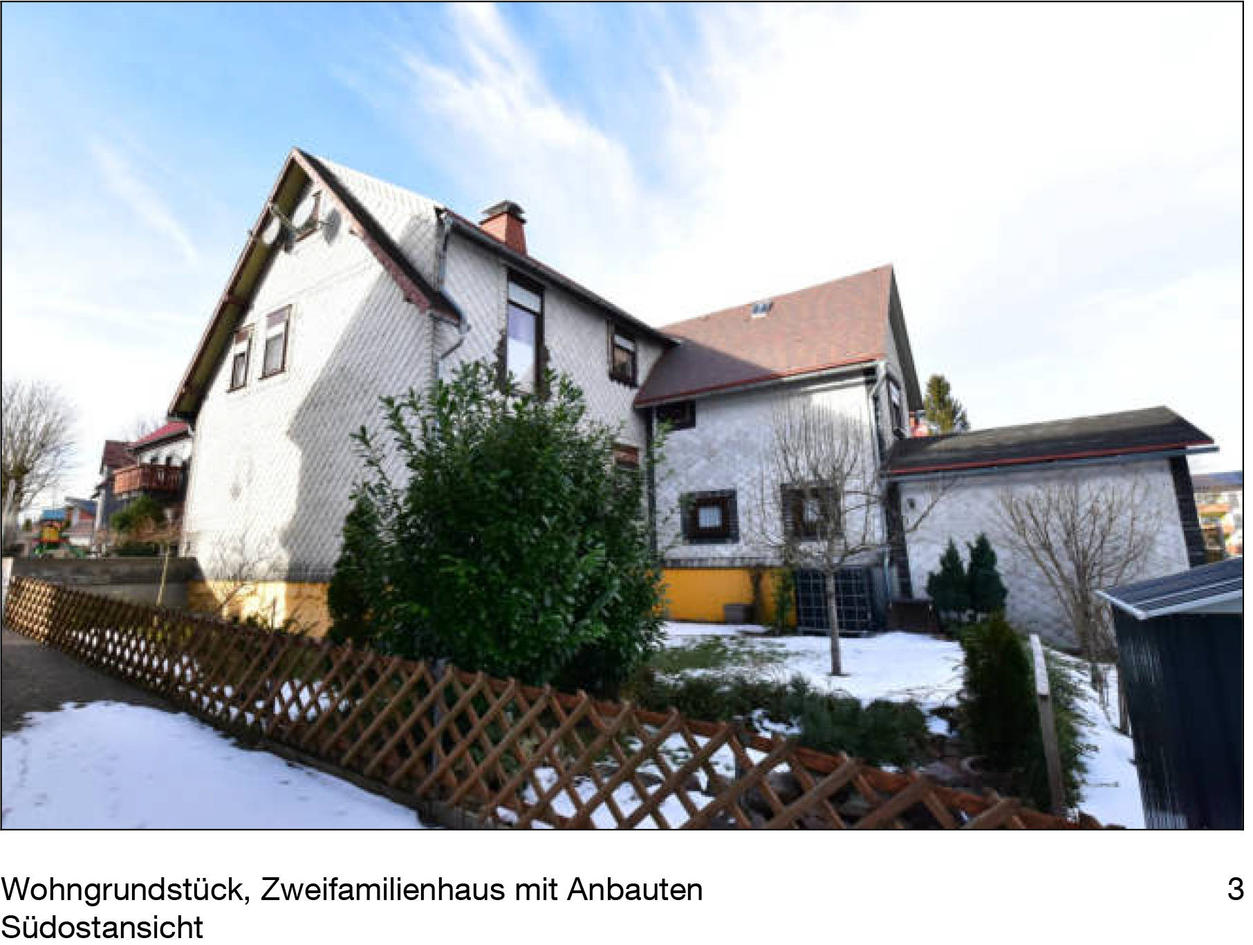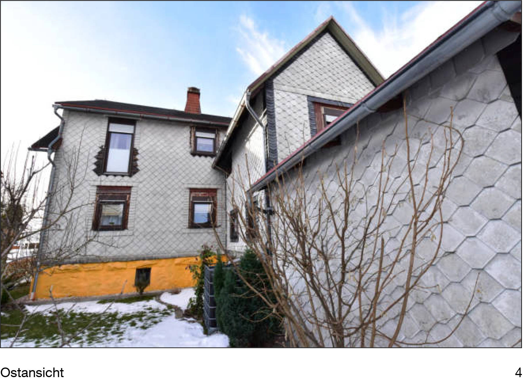 7 Tage kostenlos TestenObjekt 1: Grünfläche mit niedrigem Bewuchs (IWiese), südwestseitige Anbindung an leicht befestigtem Erschließungsfahrweg über Feldwirtschaftsweg, verpachtet | Objekt 2: freistehendes, teilunterkellertes, eingeschossiges Fachwerkgebäude mit Satteldach, Bj. 1906, eingeschossiger nordseitiger Erweiterungsanbau sowie zweigeschossiger hinterseitiger Satteldachanbau mit eingeschossigem Nebengebäudeanbau, Erweiterung 1974, Aufstockung 1989, Teilsanierungen 1992/ 2000 - 2009/ 2017 - 2020, Wohnfläche 156,97, m²; PKW-Garage, freistehender, nicht unterkellerter, eingeschossiger Mauerwerksbau mit Pultdach und hinterseitigem Gartenhausanbau, Bj. 1974, Teilsanierung 2000, Nutzfläche 18,90 m²; eigengenutzt, | Objekt 3: Grünfläche mit niedrigem Bewuchs (Wiese), ehemals Teilfläche eines Altlastenstandortes, Eintragung mittlerweile gelöscht und gilt daher als altlastenfrei, nordseitiger Erschließungsfahrweg (Feldwirtschaftsweg), verpachtet | Objekt 4: Waldfläche mit hohem Bewuchs, ehemals Teilfläche eines Altlastenstandortes, Eintragung mittlerweile gelöscht und gilt daher als altlastenfrei, südwestseitig durch einen Gewässerlauf begrenzt, ausschließlich über anschließende Waldflächen erreichbar, nicht bewirtschaftet, im Biosphärenreservat "Thüringer Wald" gelegen